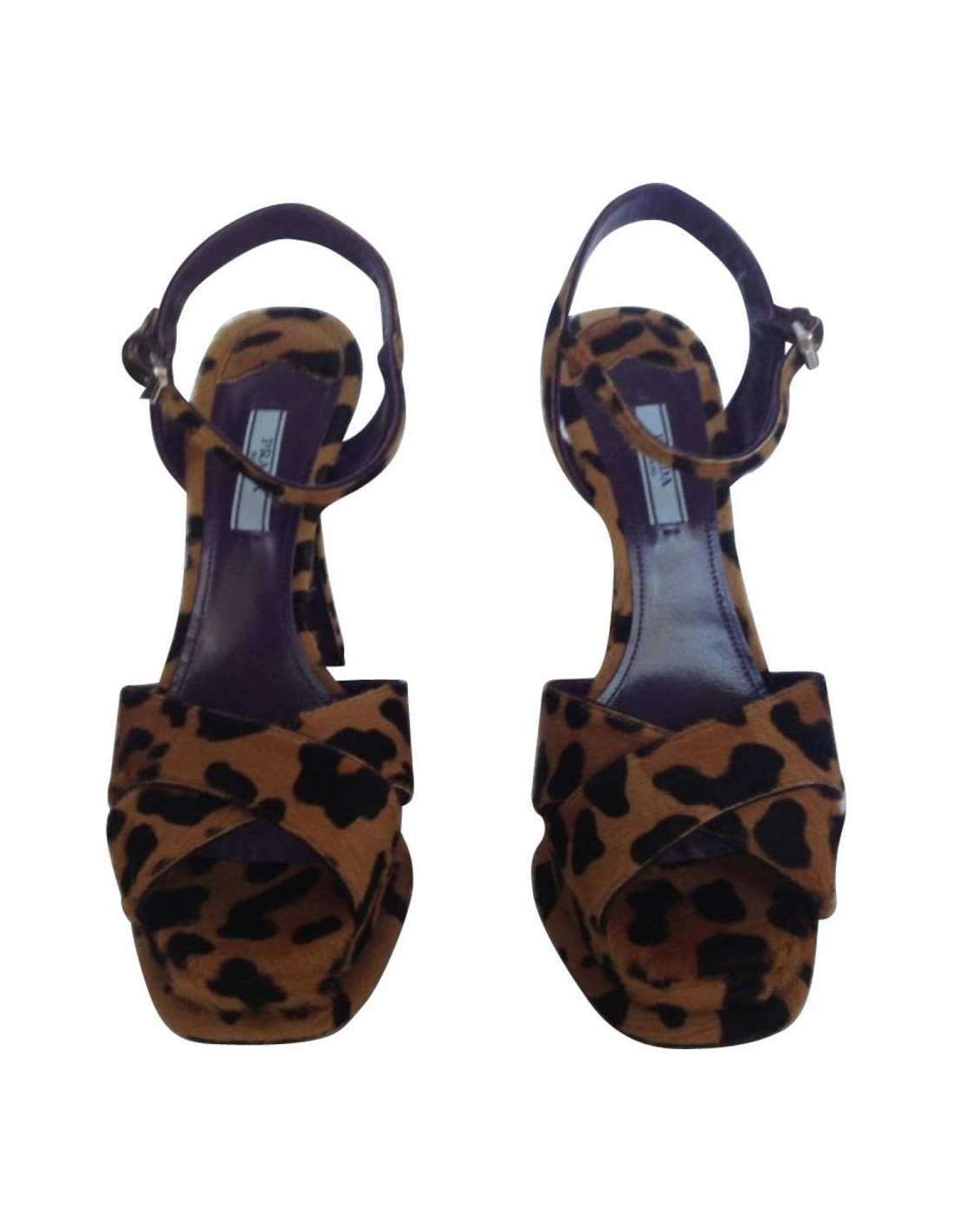 Très tendance ! Sandales hautes en poulain motif léopard Prada T 39,5.