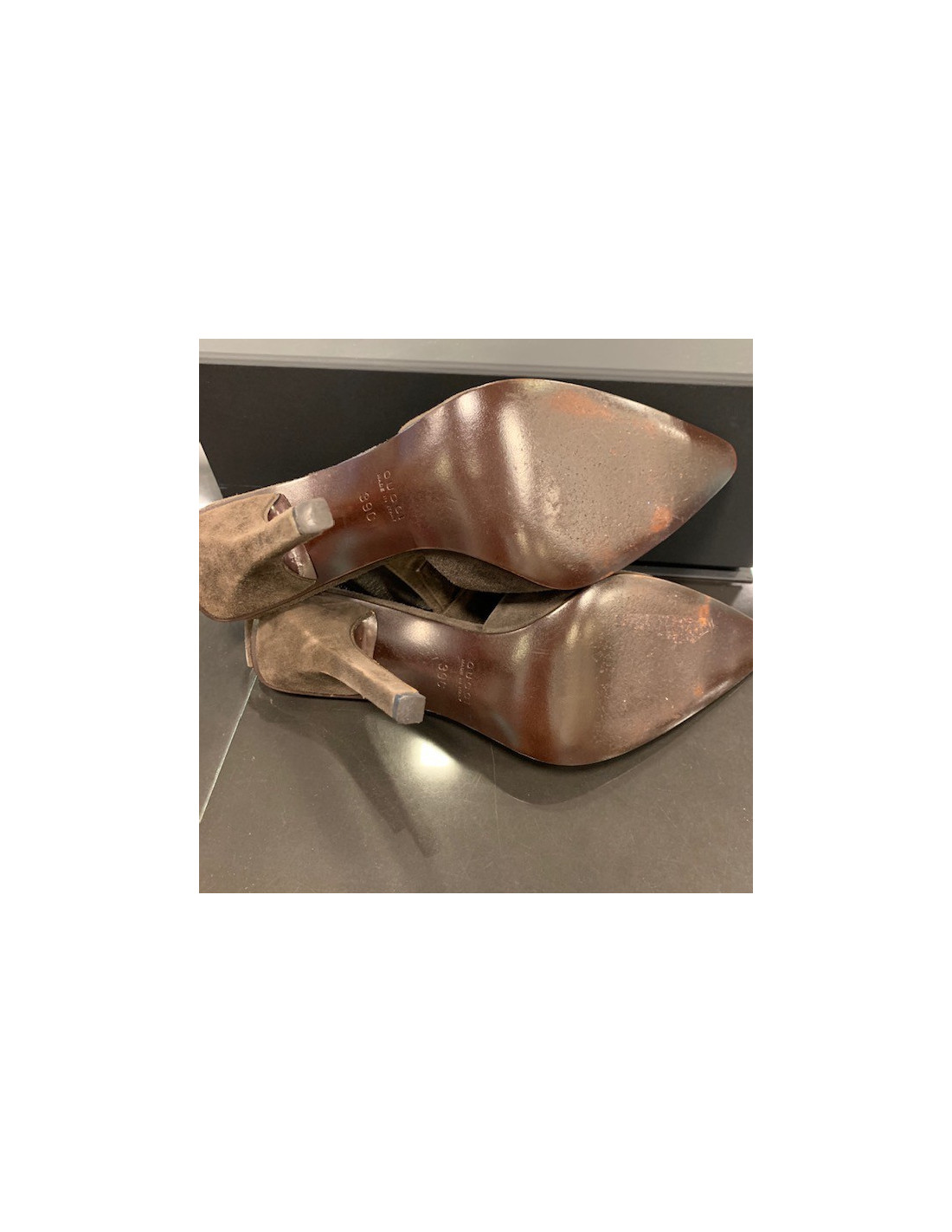 Escarpins Gucci en veau-velours marron T 39C IT semelle cuir marron. En très bon état.