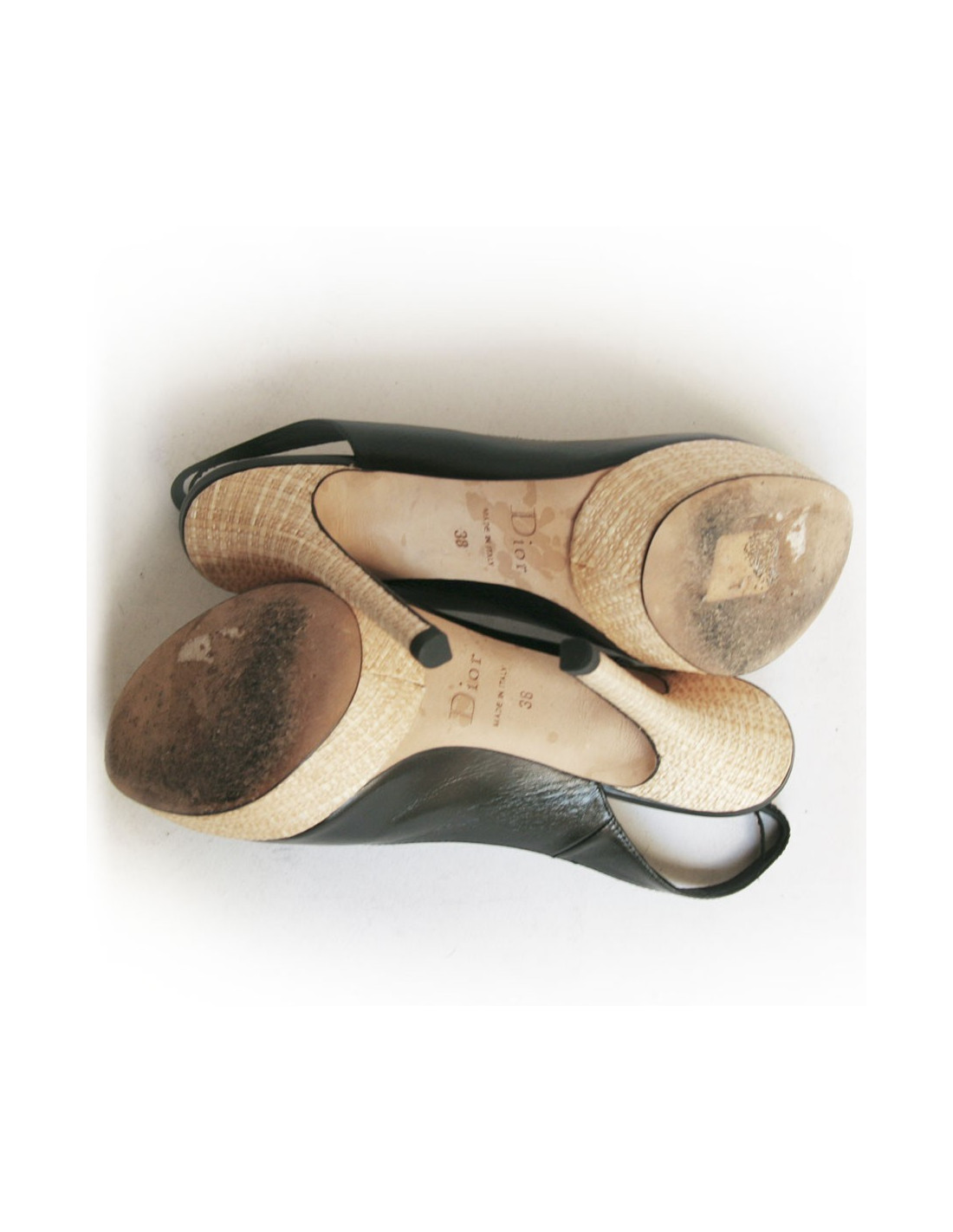 Sandales hautes Christian Dior T 38 en cuir noir et raphia