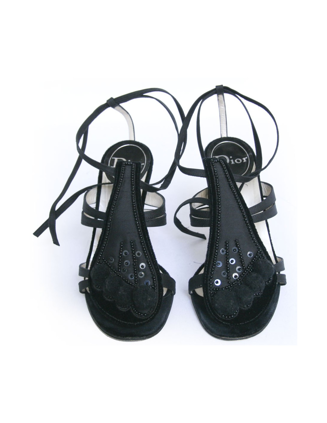 Sandales du soir DIOR T 37.5 en satin de soie noire - Détails