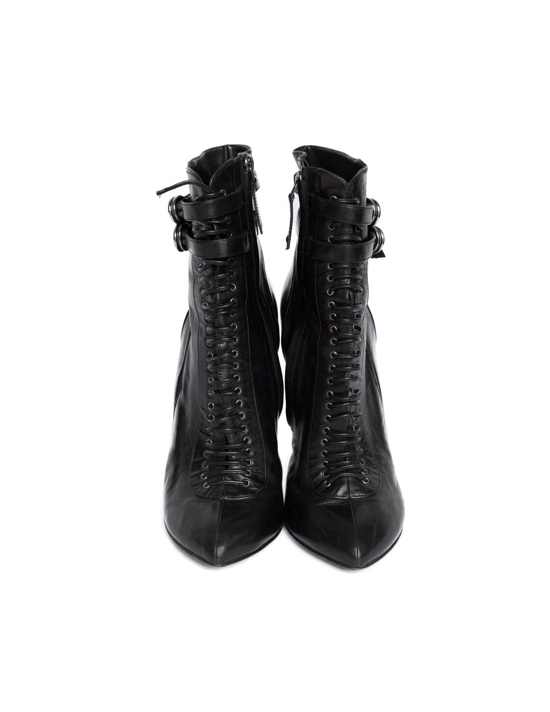 Très jolie paire de boots à talons Nina Ricci en cuir noir. Taille 38. Fermeture zippée à l'intérieur de la chaussure. Il est également possible d'ajuster avec les lacets si vous souhaitez les avoir plus serrées ou pas. En très bon état.