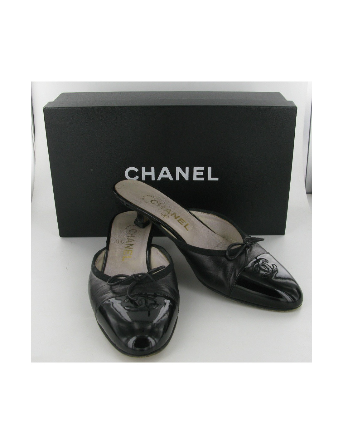 Derniers articles en stock ESCARPINS-COMPENSÉS Sandales à plateforme CHANEL taille 40 bicolores en cuir verni noir et croco blanc CHANEL 17529 380,00 € Sandales plateforme Chanel bicolores en cuir verni noir et python blanc taille 40. Très bon état (portées une fois), malgré quelques infimes traces à l'avant de la chaussure. L'avant de la chaussure et le talon sont liés par une perle blanche nacrée, Le fermoir est siglé "CHANEL". Les dimensions: talon 14 cm - la plateforme 3.7 cm - largeur du pied... Ajouter au panier