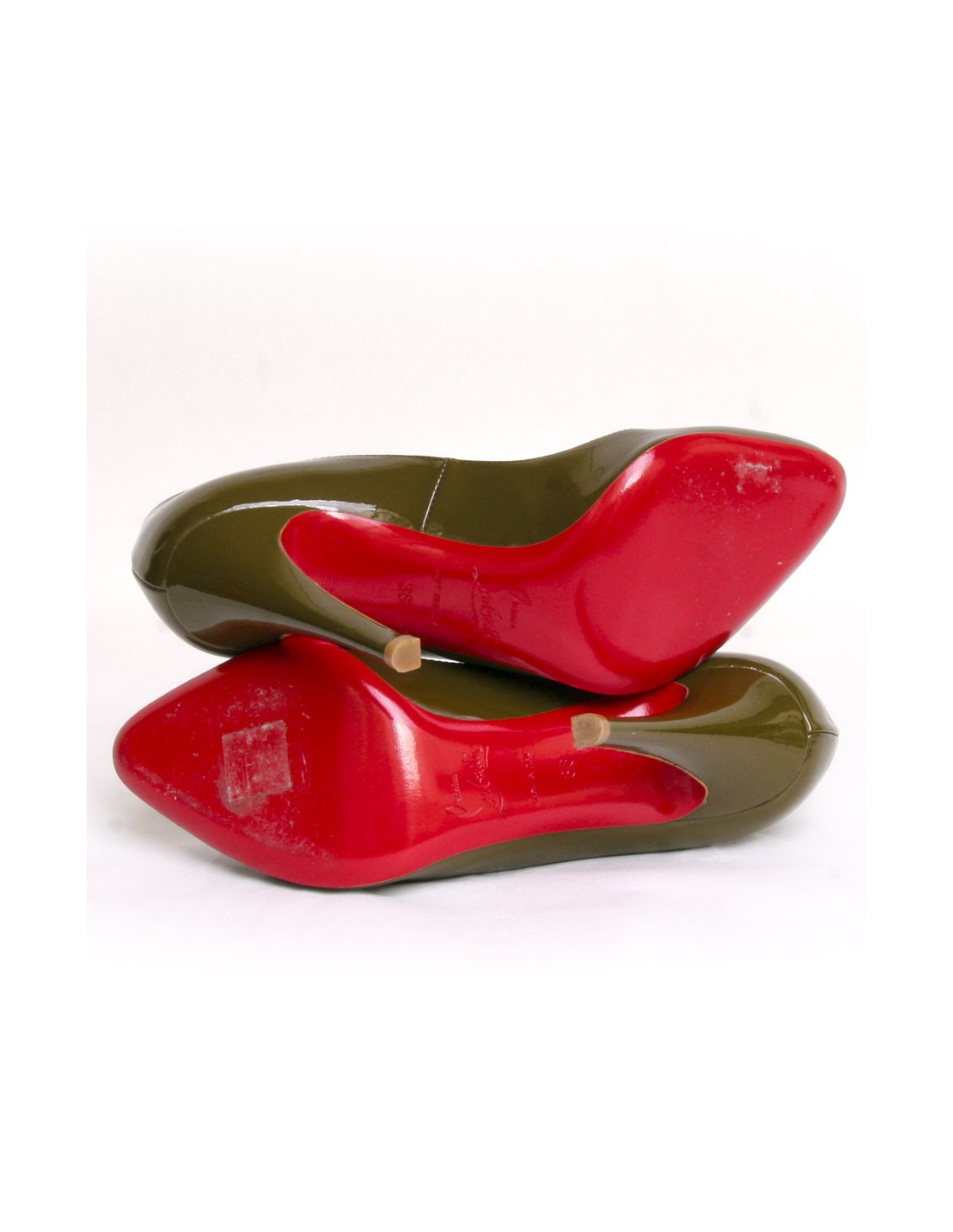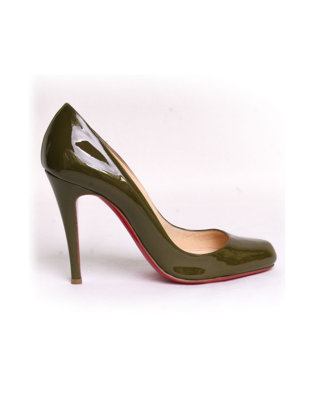 Escarpins Décolleté 863 de la Maison Christian Louboutin en cuir verni vert kaki. Taille 36. Bout rond. Elegantes et faciles à porter aussi bien avec un pantalon qu'avec une robe. En très bon état. Très peu portées.