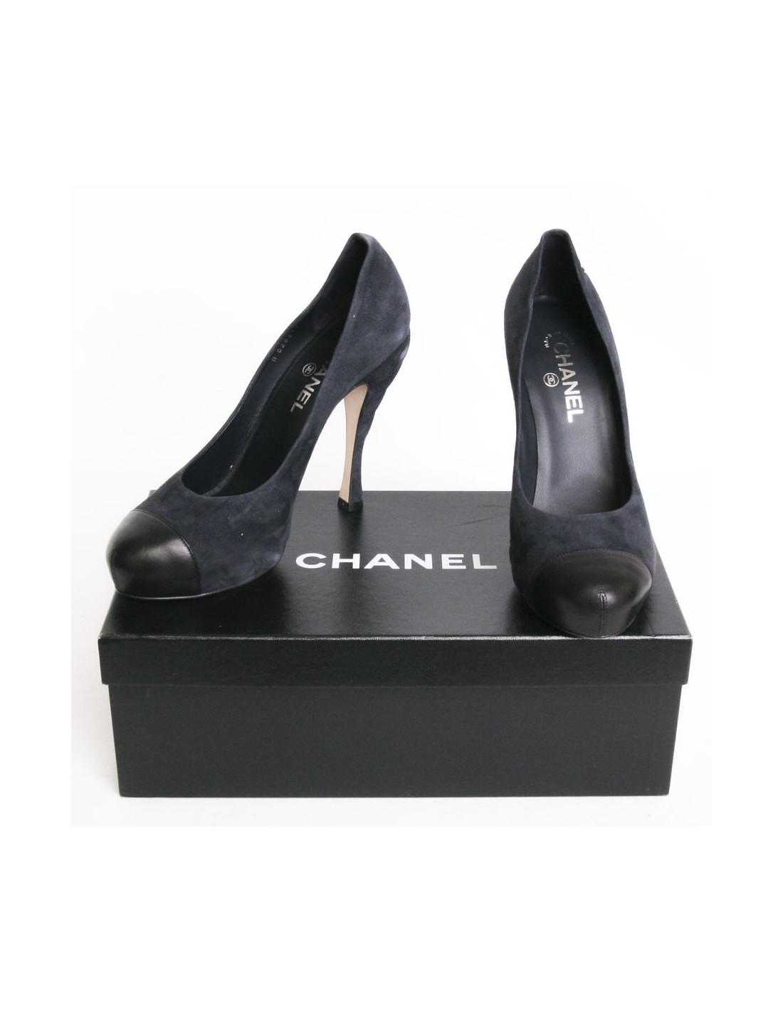 Escarpins CHANEL T 41 veau velours marine et bouts noirs