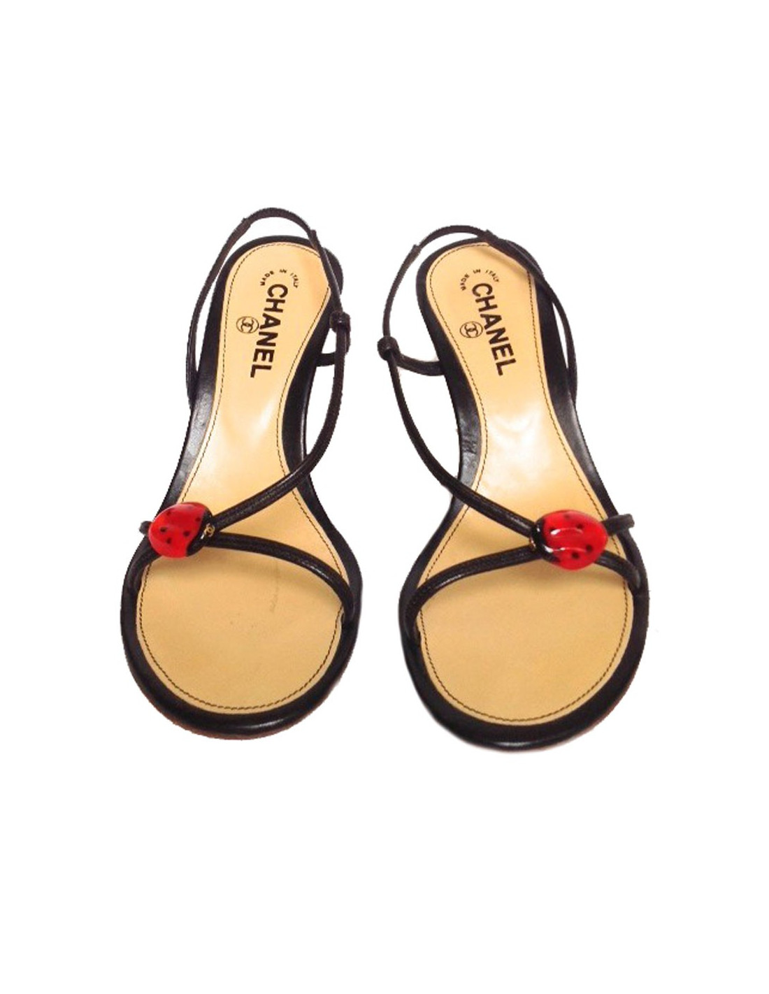 Sandales hautes CHANEL t.39.5 en cuir et coccinelle