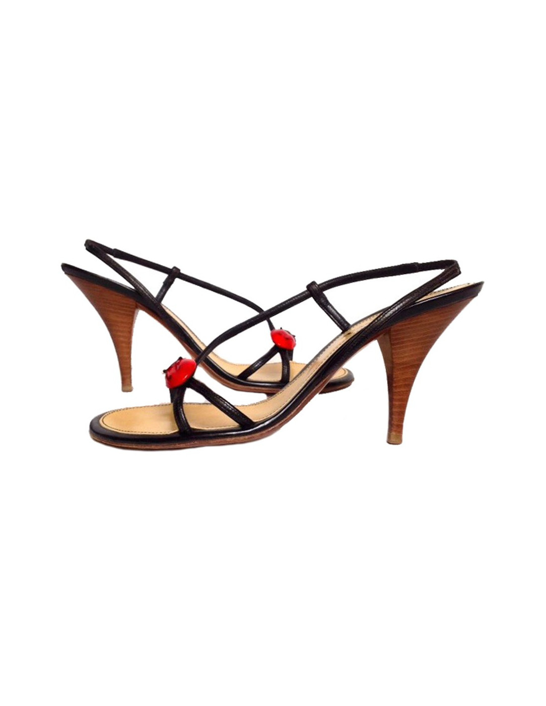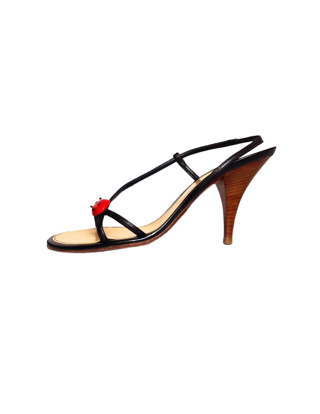 Sandales hautes CHANEL en cuir noir et coccinelle