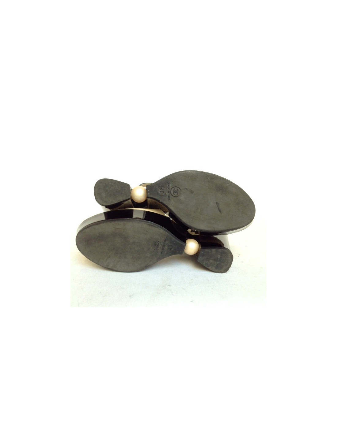 Sandales à plateforme CHANEL taille 40 bicolores en cuir verni noir et croco blanc