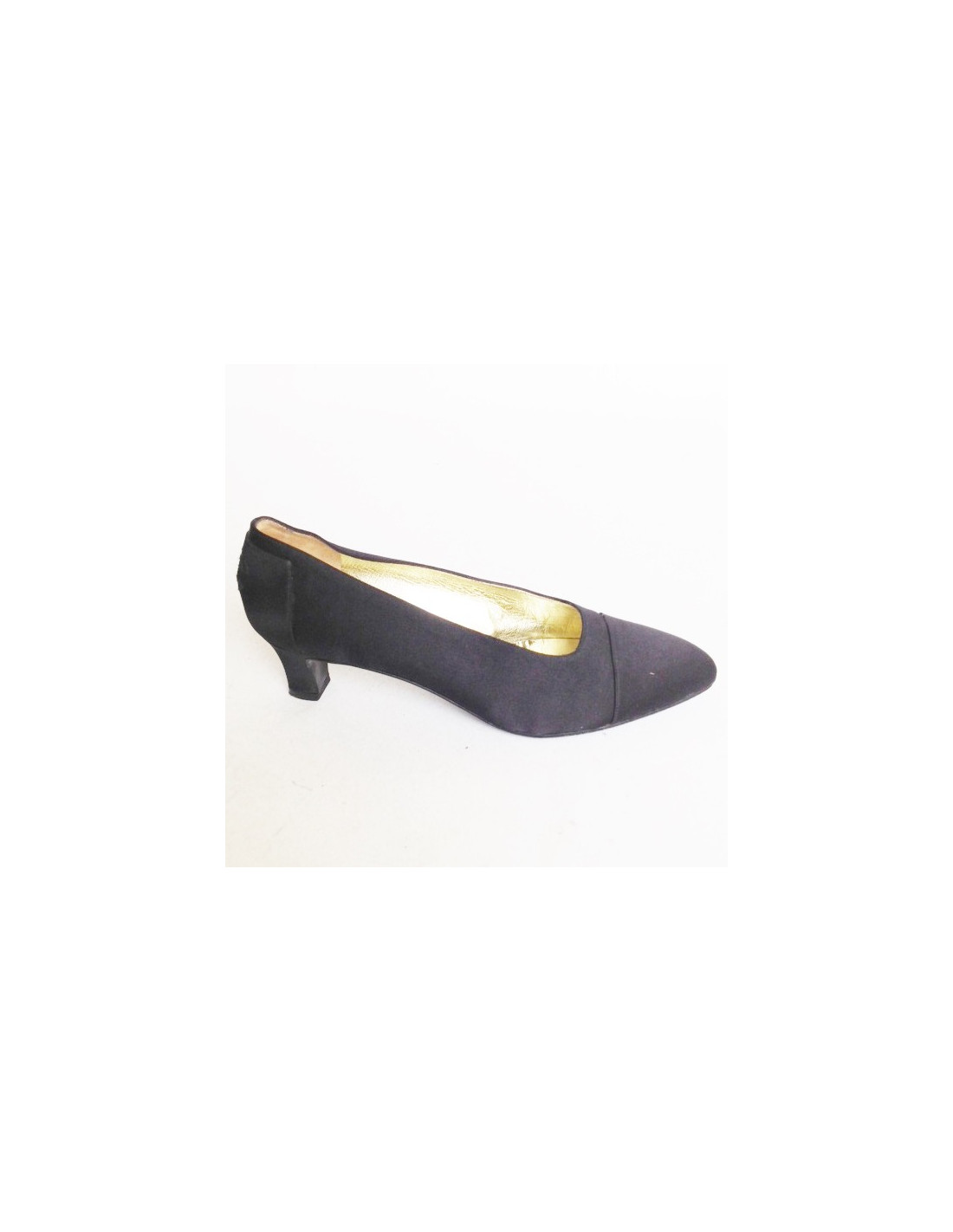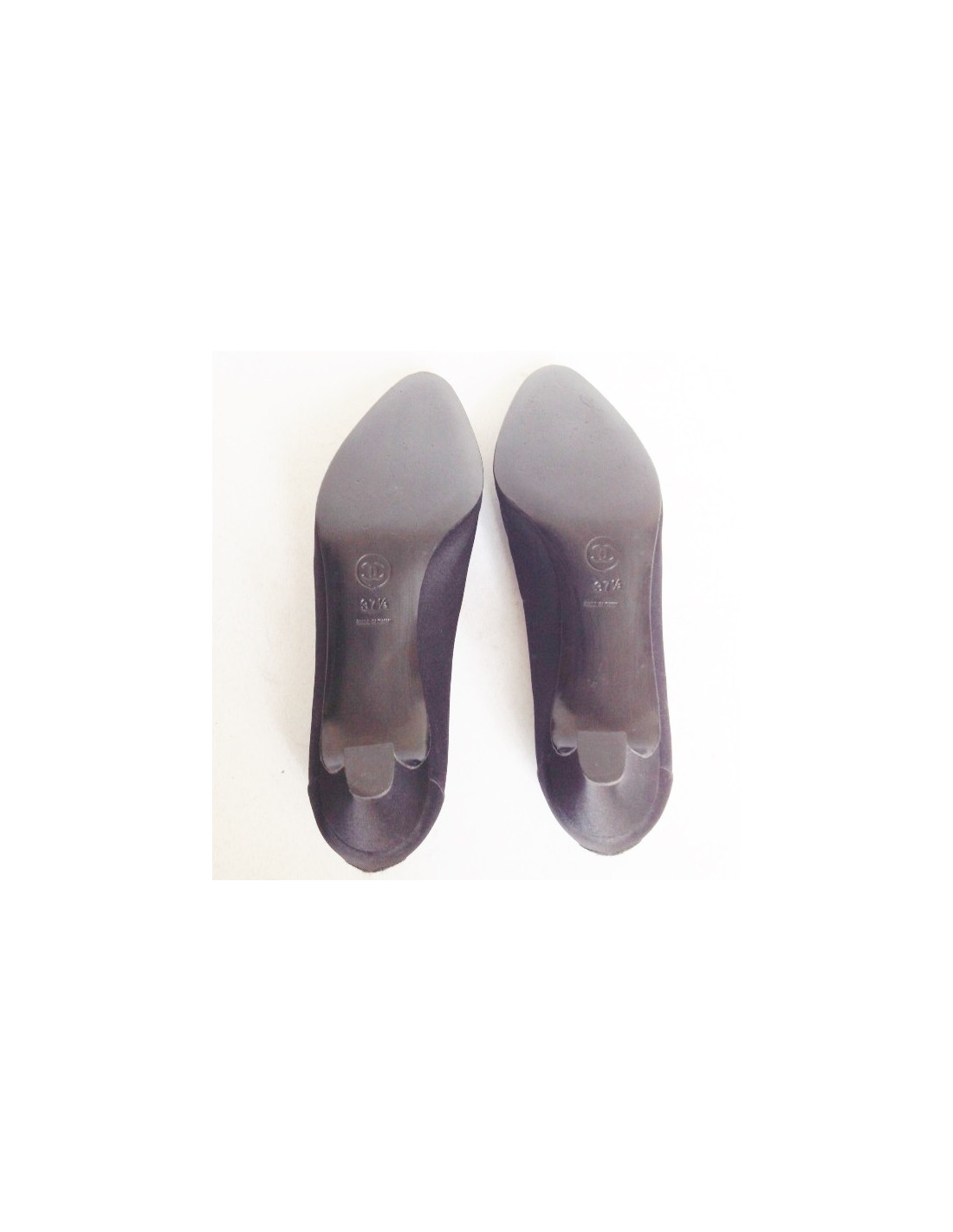 Escarpins couture CHANEL T37.5 en satin duchesse noir en très bon état.
