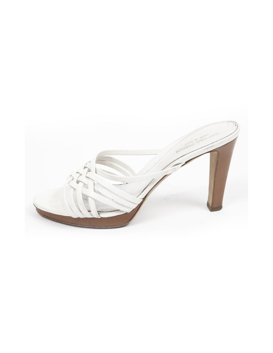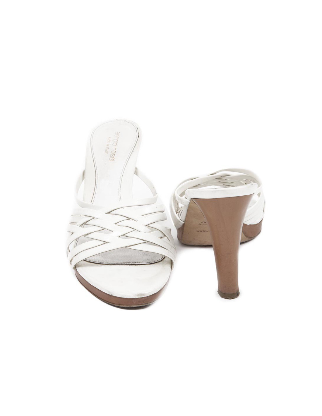 Sandales hautes SERGIO ROSSI T38.5 en cuir blanc.