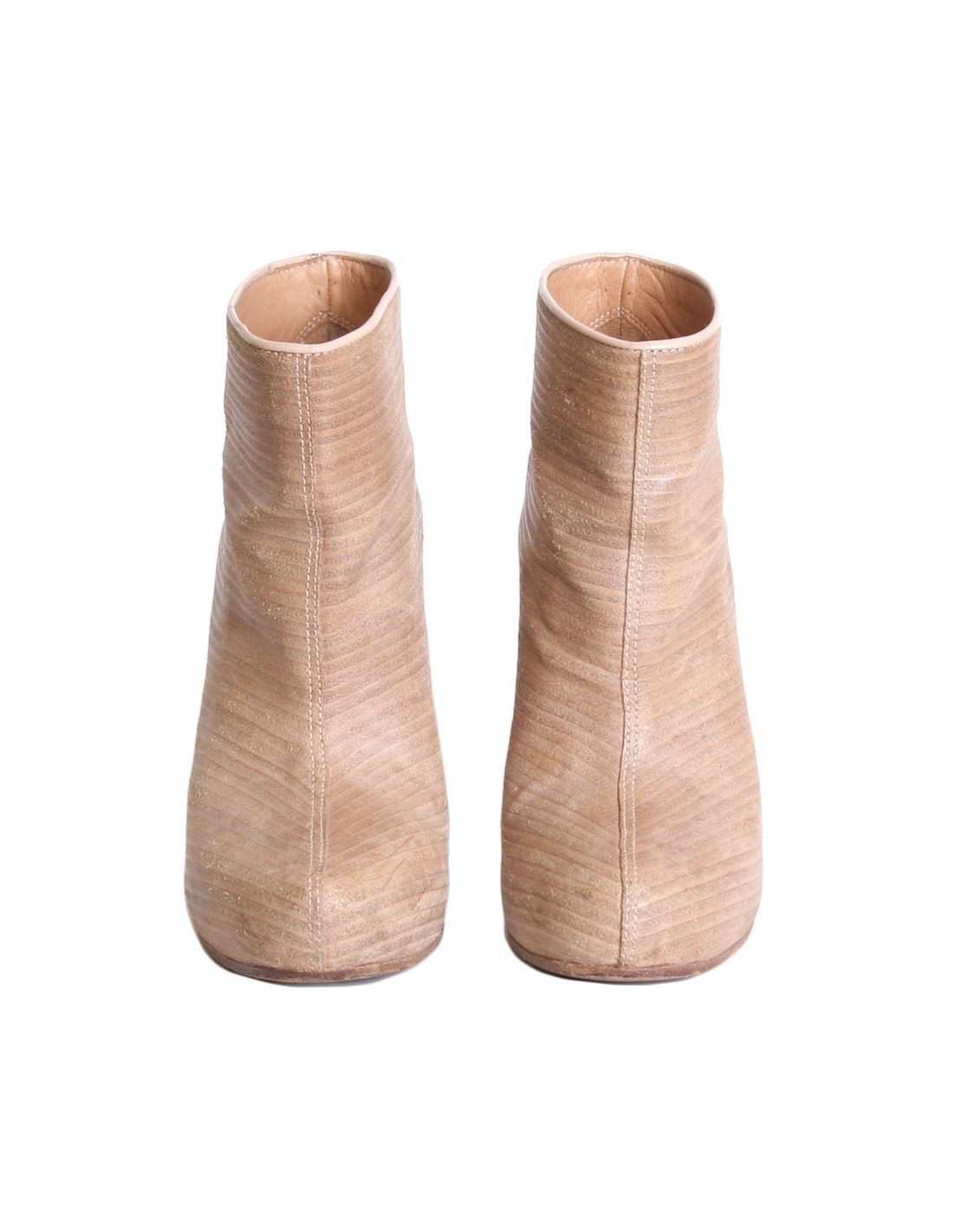 Détails : bottines Maison Martin Margiela. Elles sont en cuir façon bois. Bon état car de légères traces d'usure.