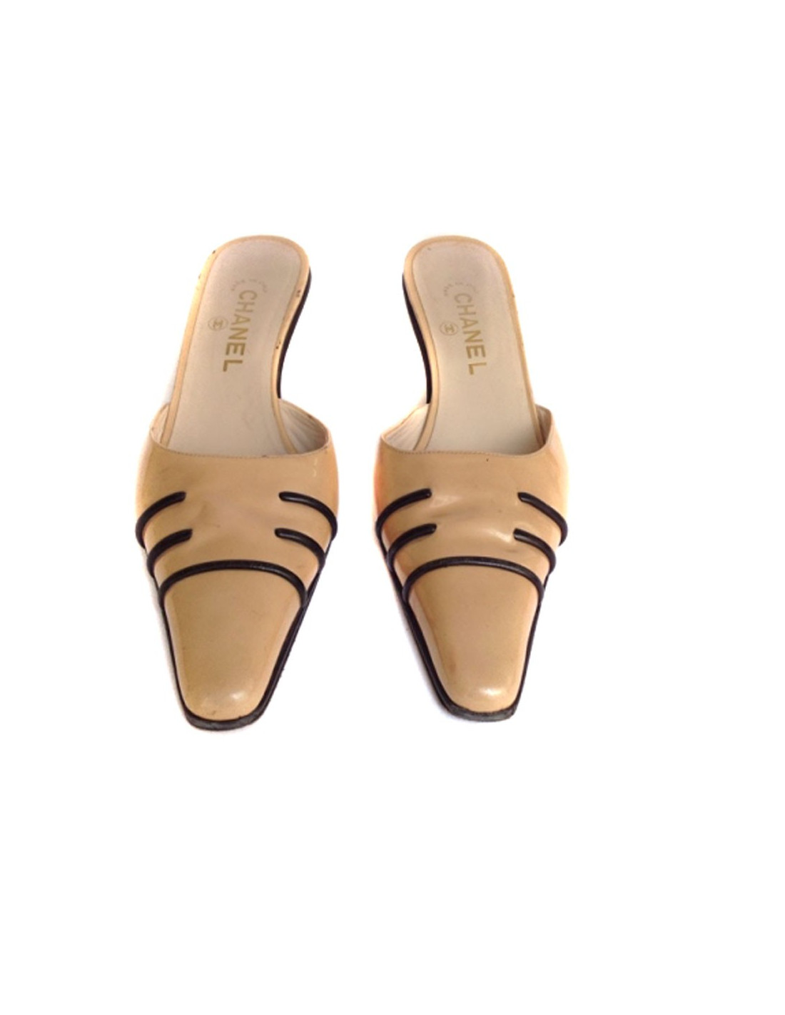 Mules à talons CHANEL T41 cuir verni beige