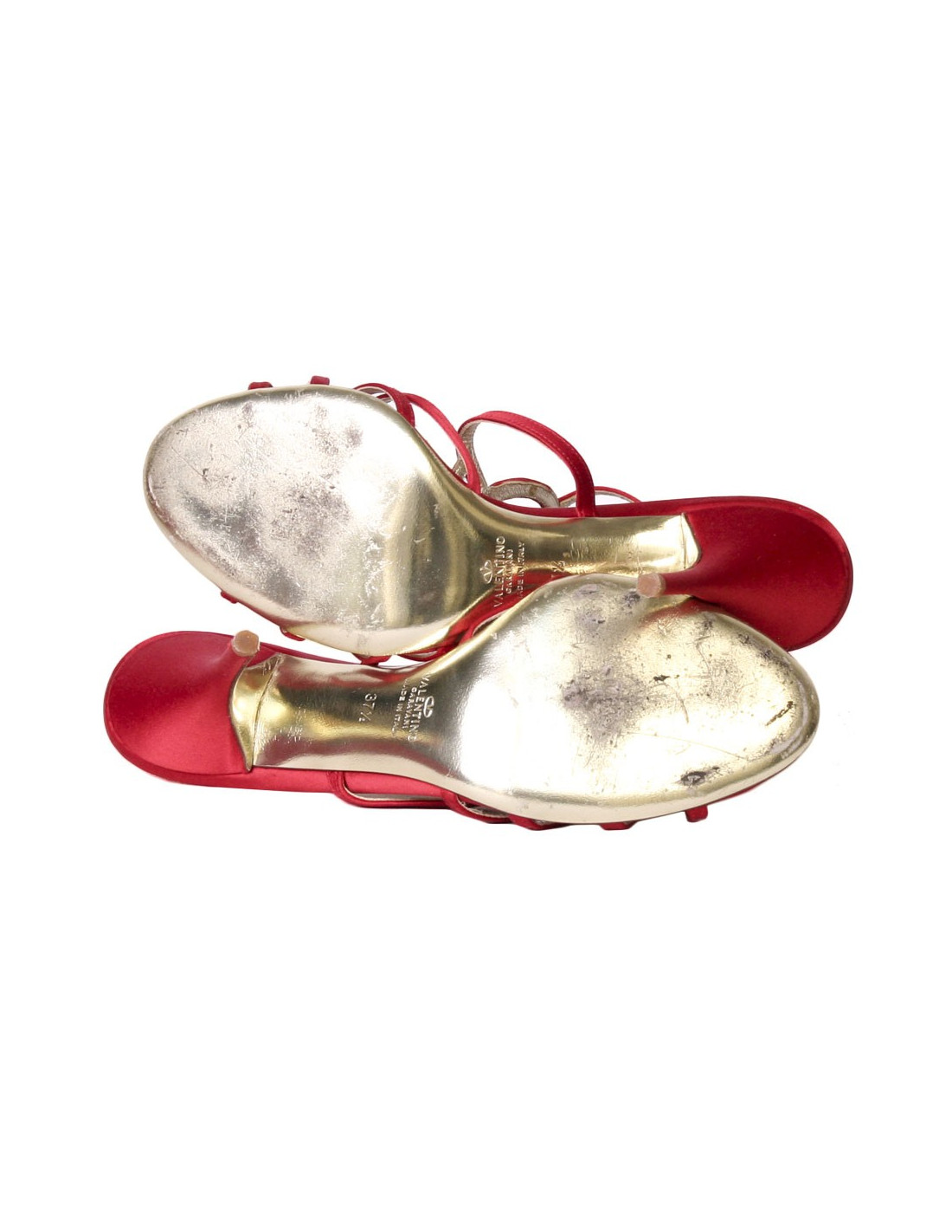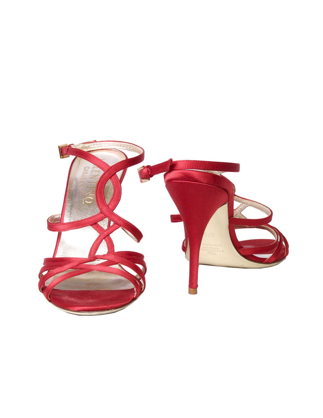 Très élégante paire d'escarpins Valentino en satin de soie de couleur rouge. Taille 37,5. Idéale pour une soirée. Elle saura habillée toutes vos plus jolies robes. En excellent état.