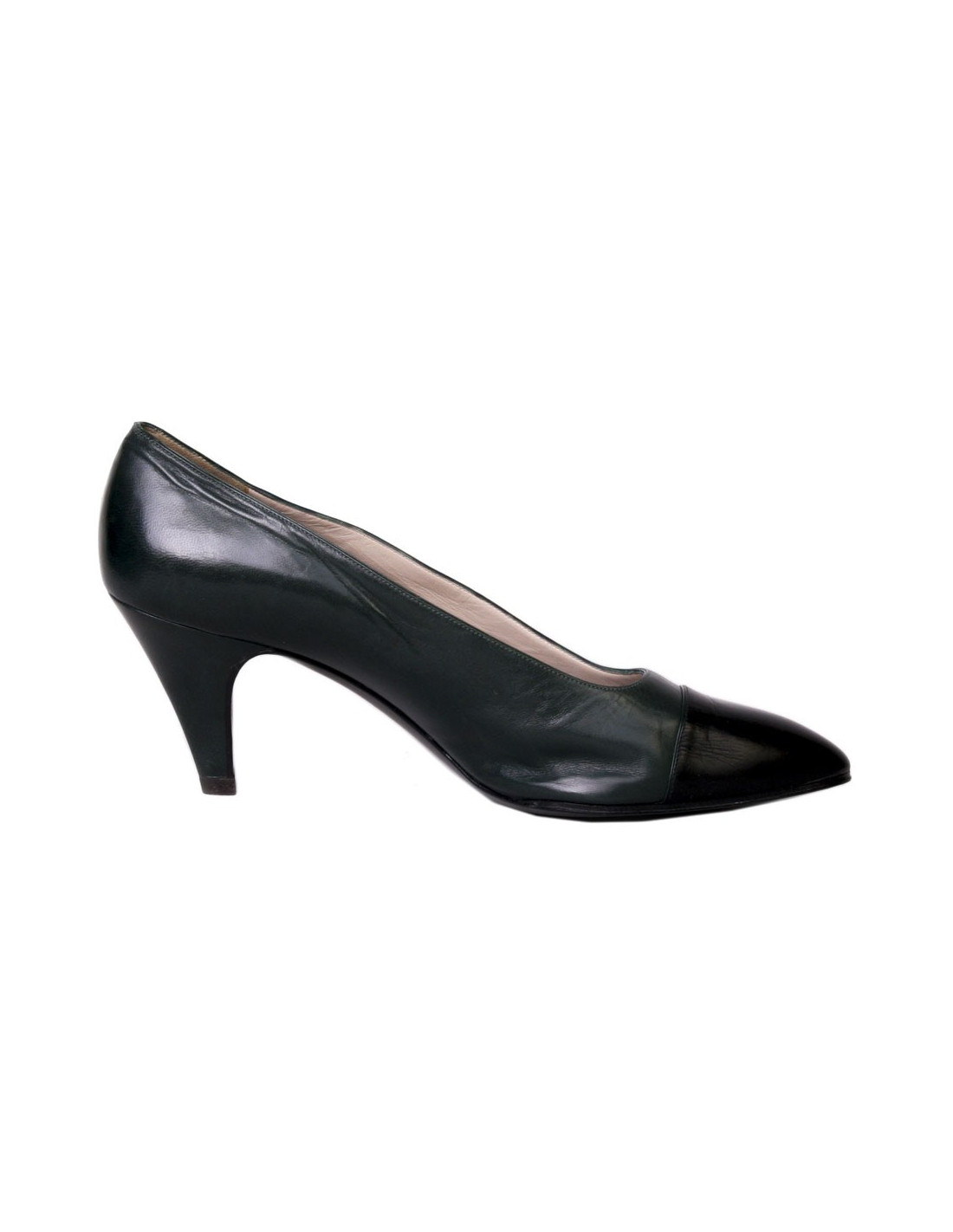 Escarpins CHANEL T38 cuir bicolore vert et noir