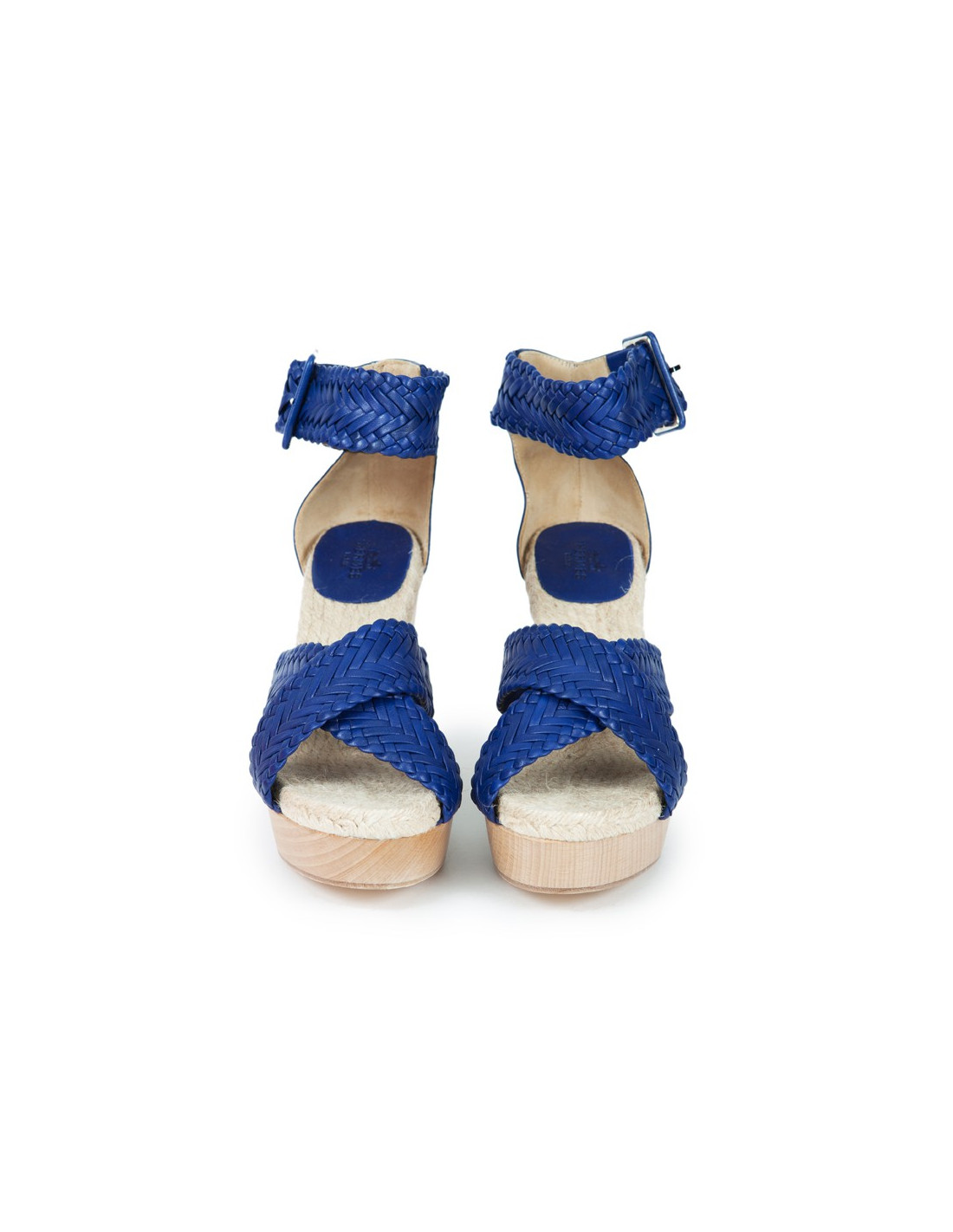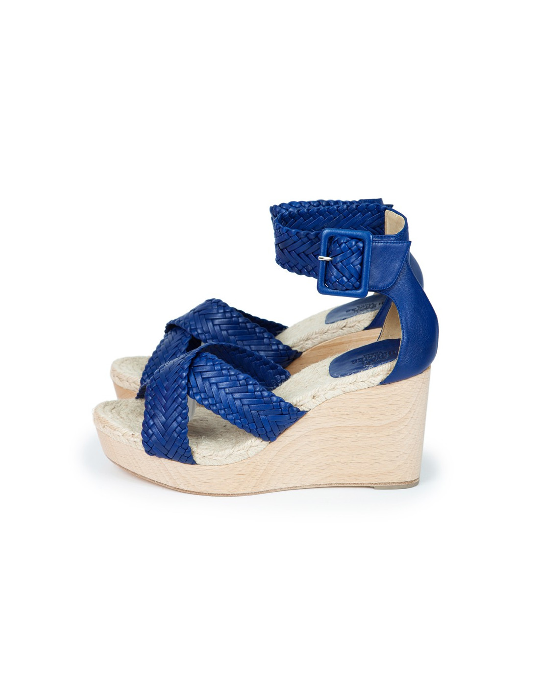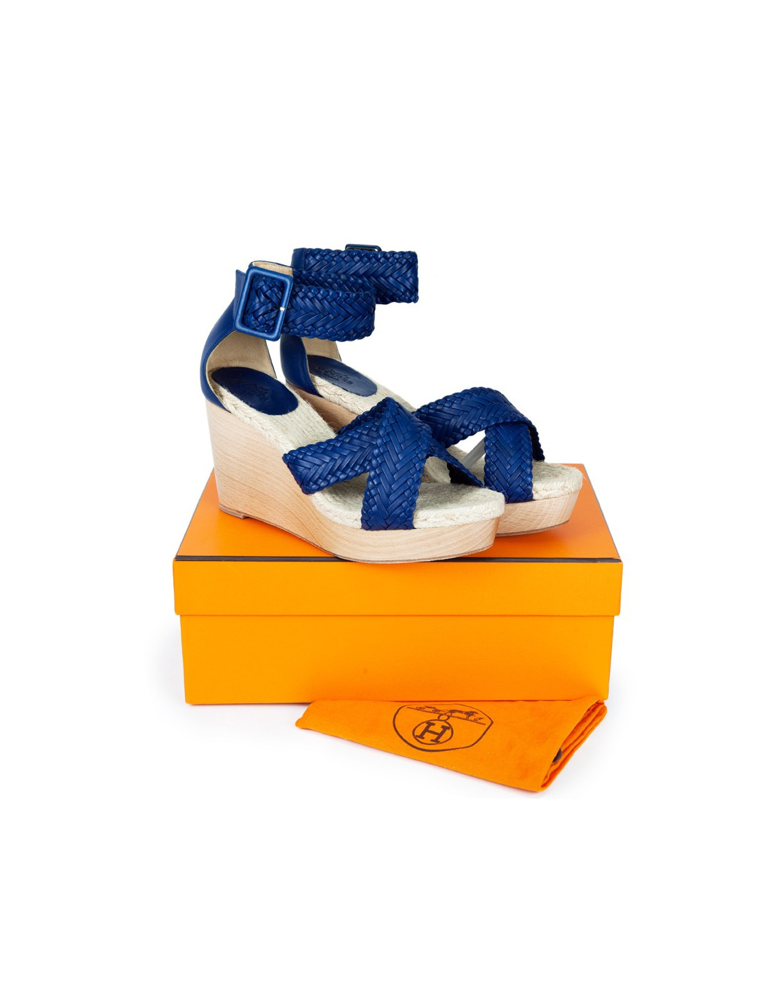 Sandales HERMES T 39 "Cordoba"compensées bleues