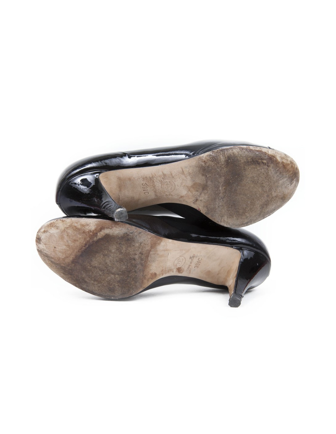 Escarpins CHANEL T 39.5 C cuir verni noir
