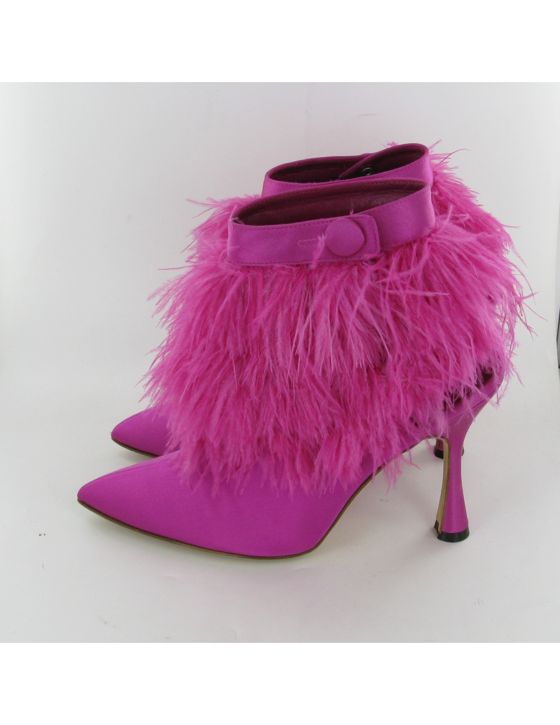 Escarpins satin et plumes rose MANOLO BLAHNIK