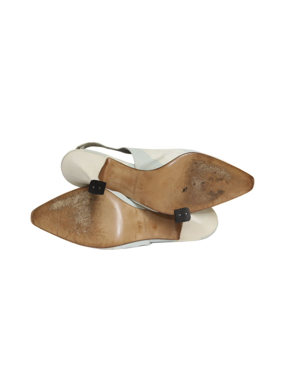 Escarpins CHRISTIAN DIOR T 37, en toile bicolore bleu clair et blanc.