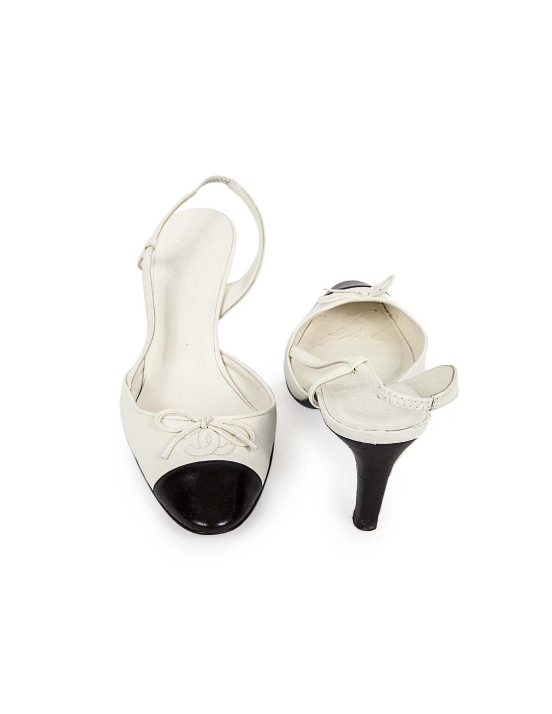 Sandales hautes de la Maison Chanel en cuir bicolore noir et blanc. Taille 39. Sigle "CC" à l'avant. Semelle extérieure en cuir noir. En très bon état.