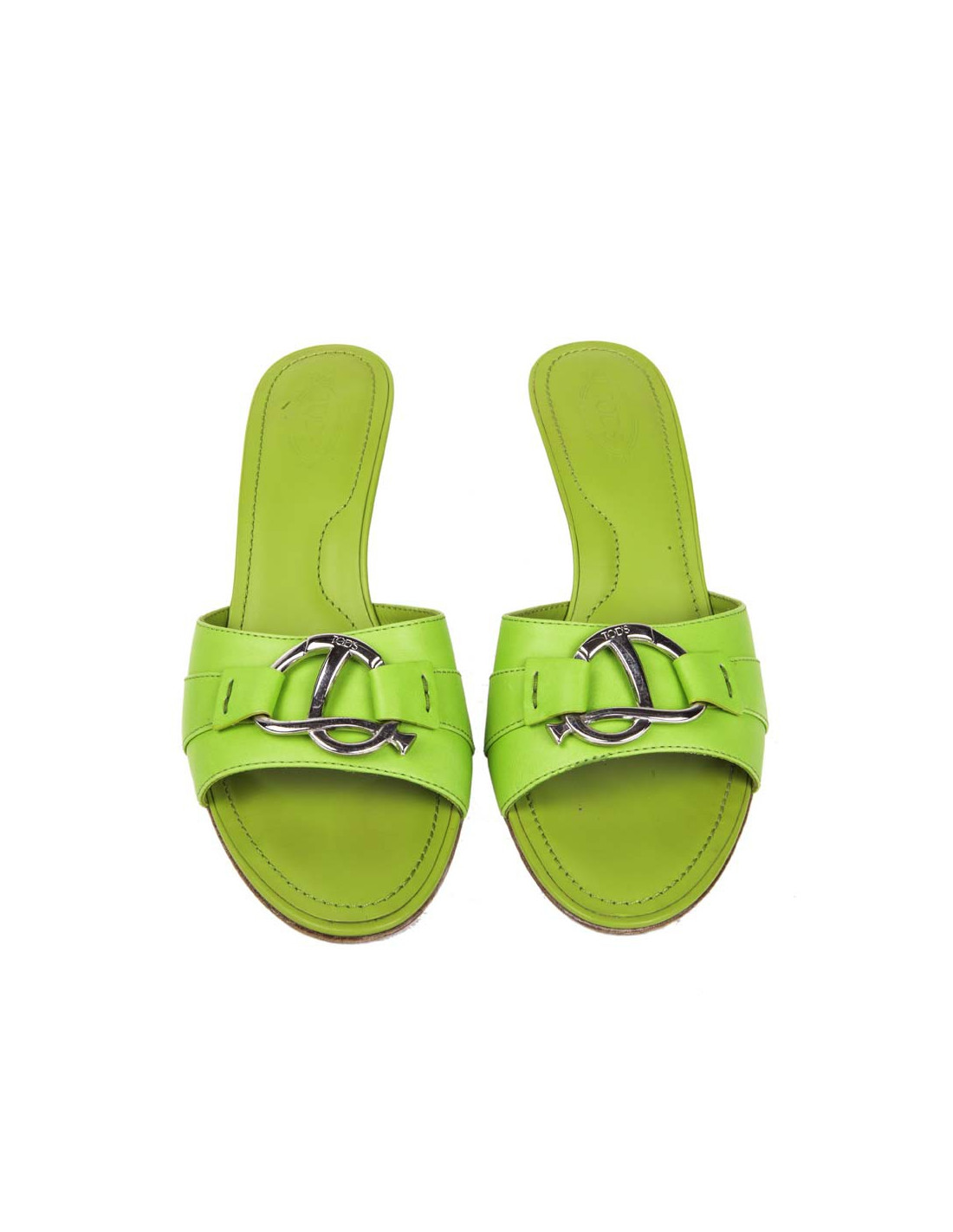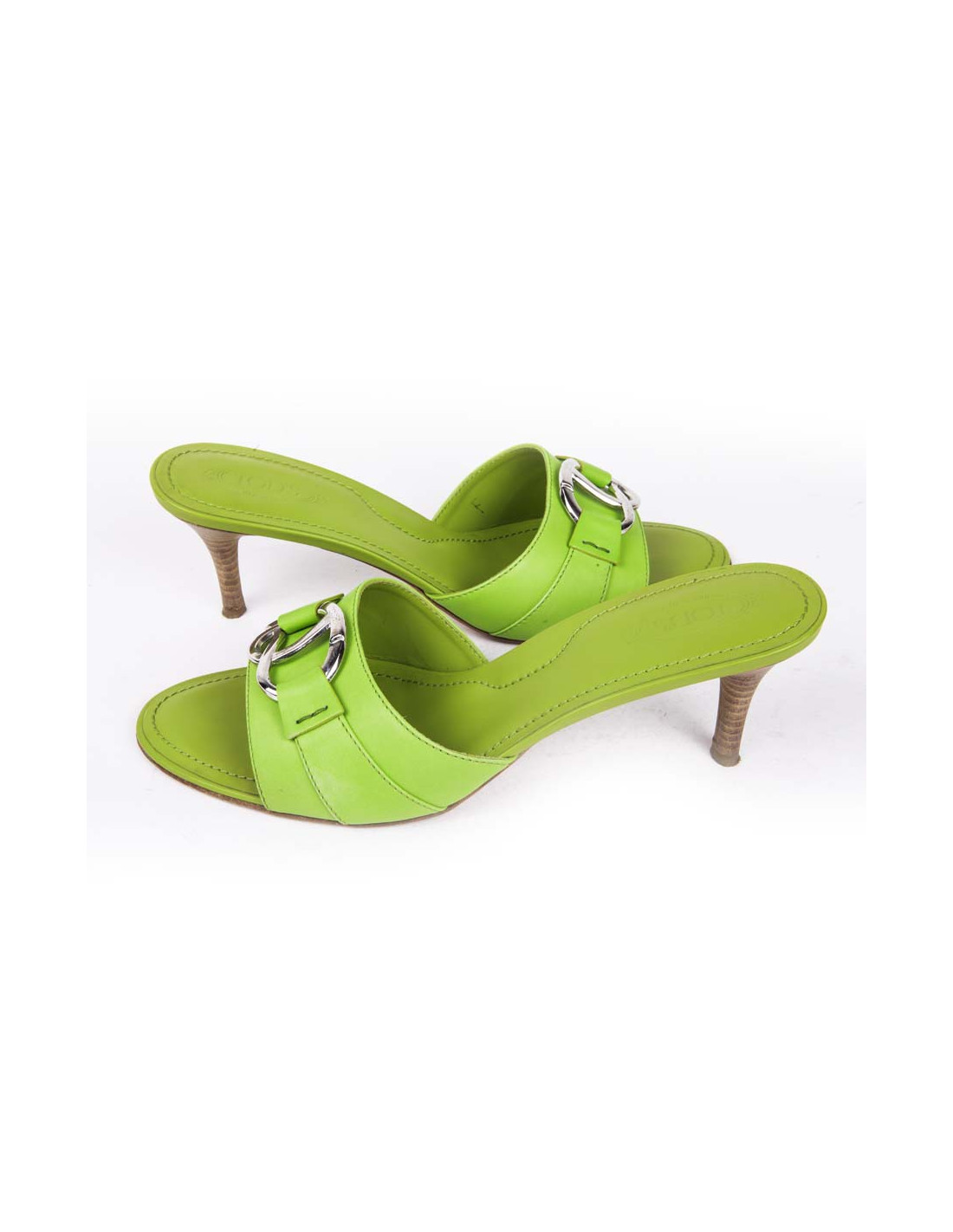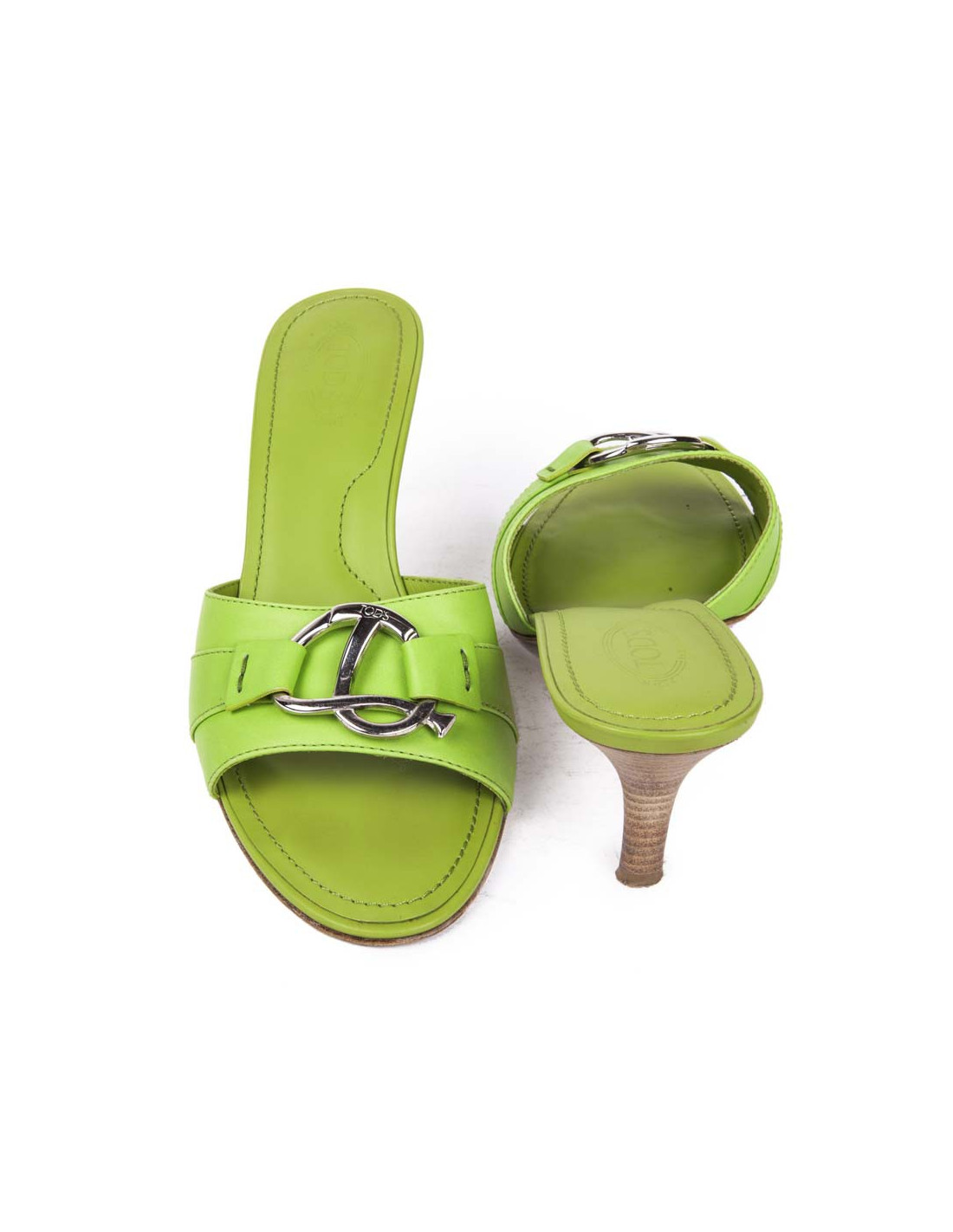Ces sandales mi-hautes de la Maison Tod's sont en cuir vert pomme. C'est une taille 39 fr. Boucle à l'avant en métal argenté. Elles sont en très bon état.