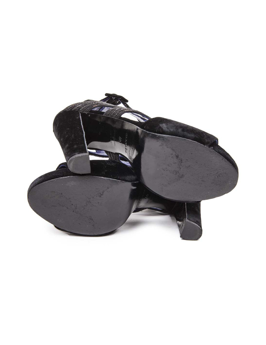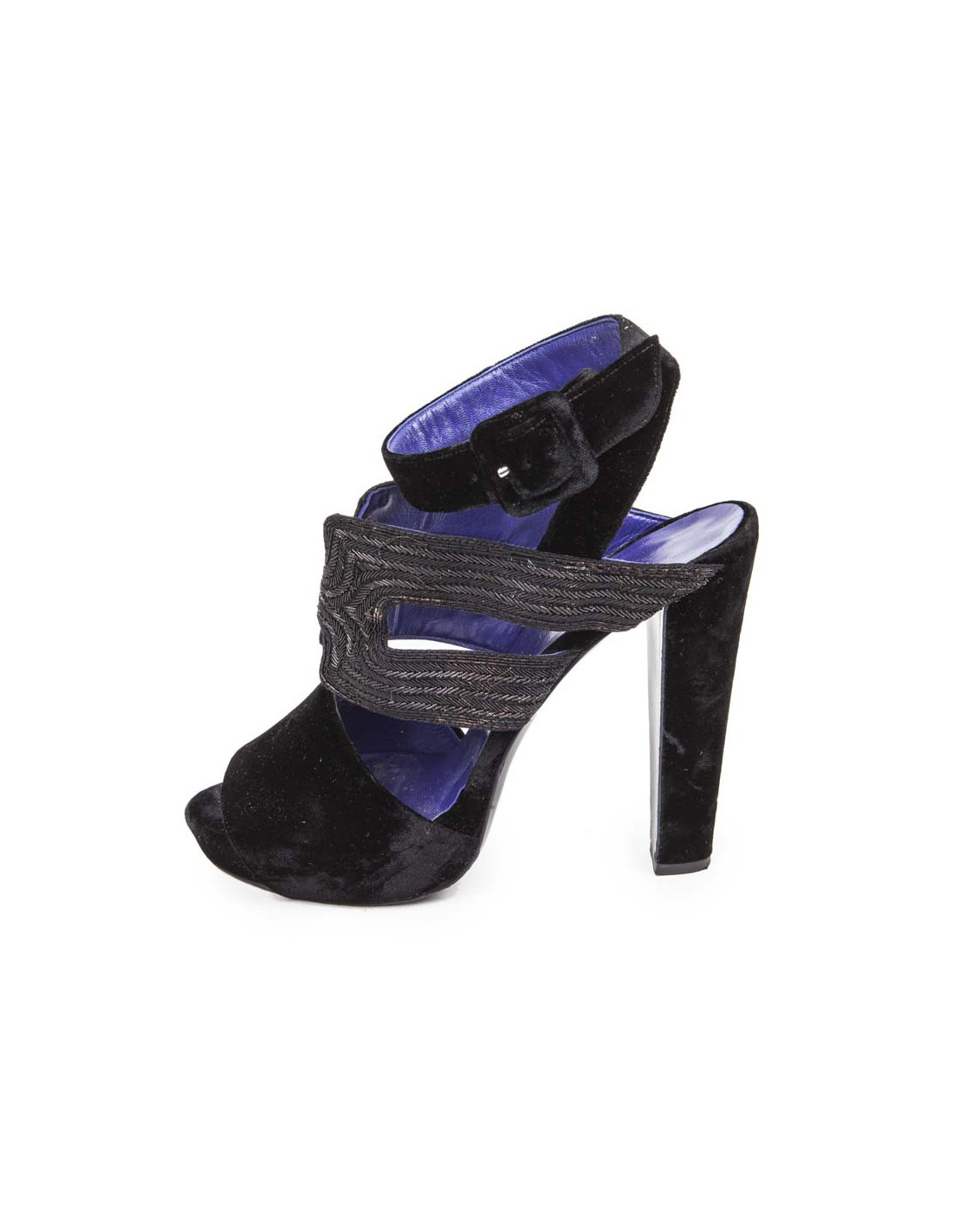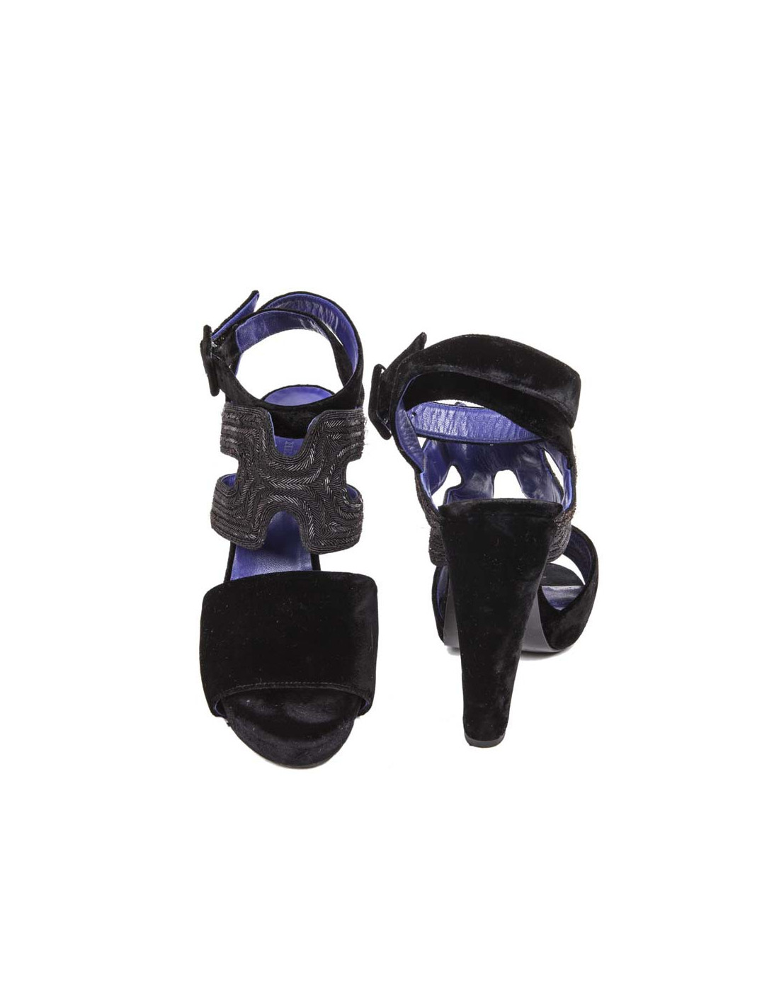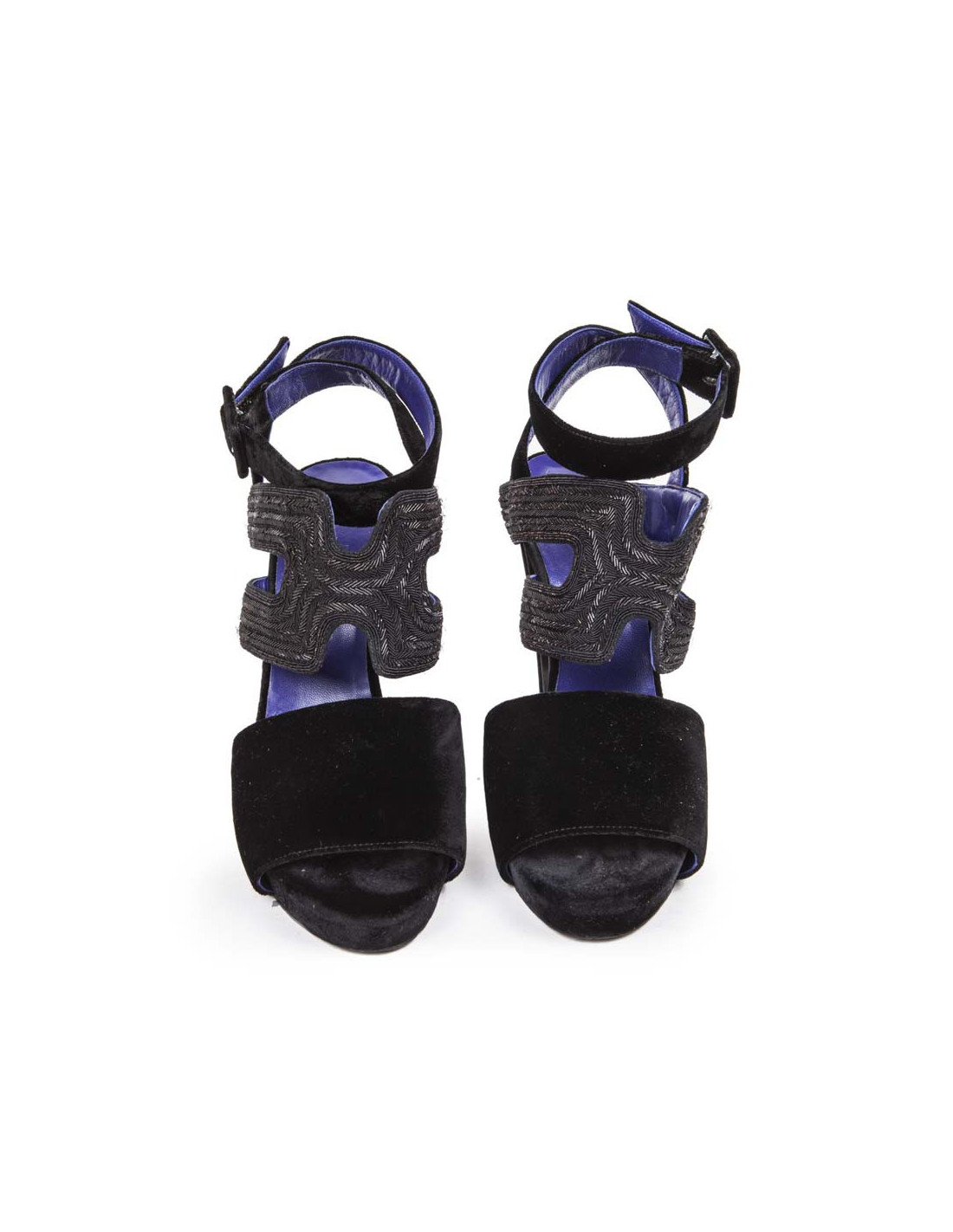 Sandales hautes en velours noir et brodé de fils métallisés de la Maison Hermès.