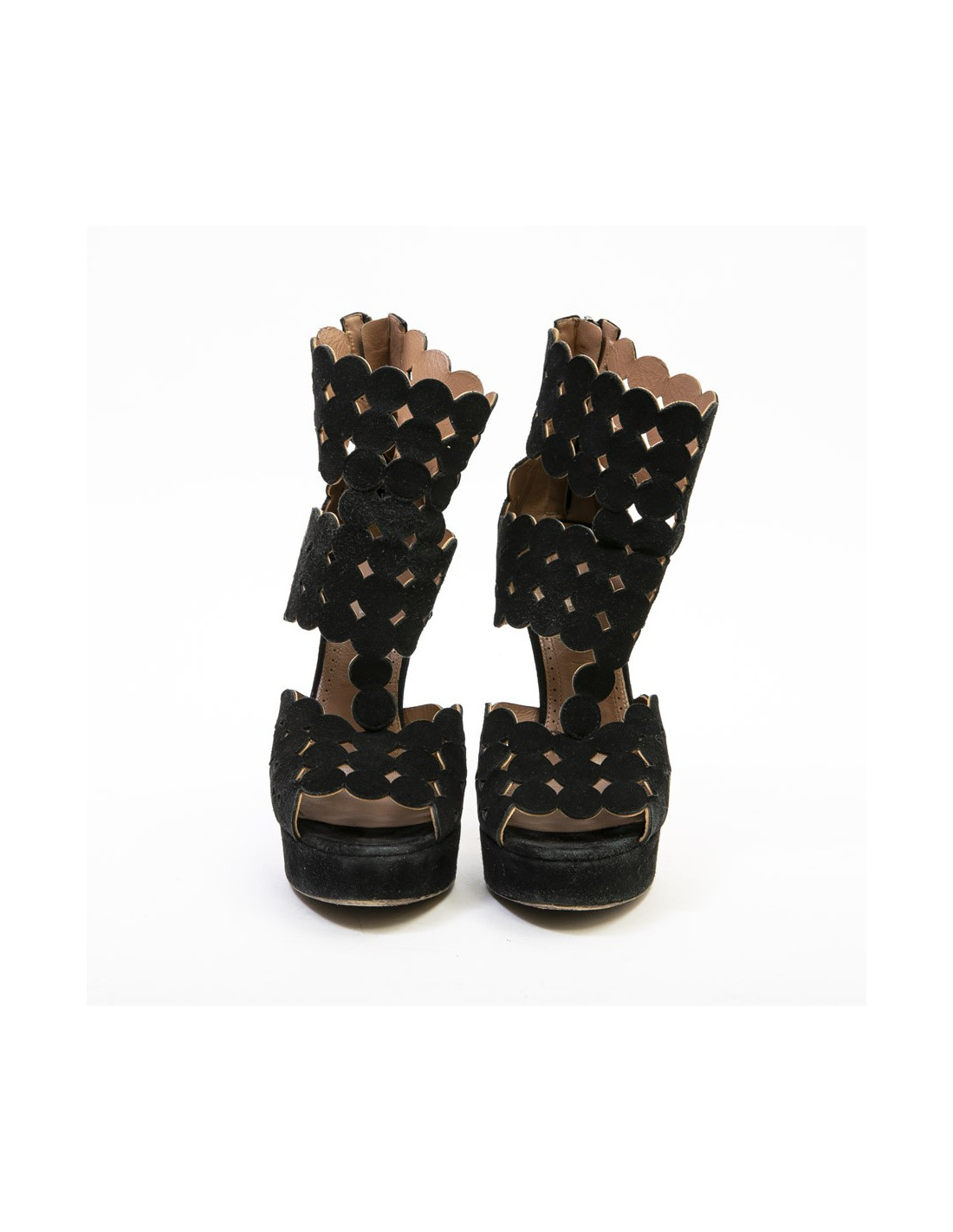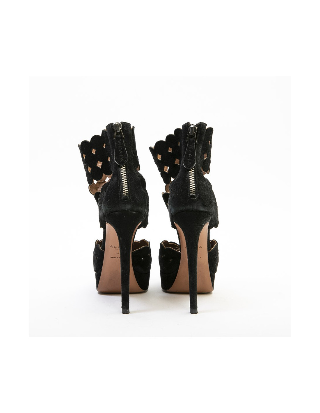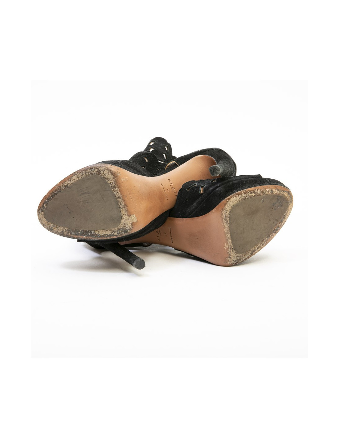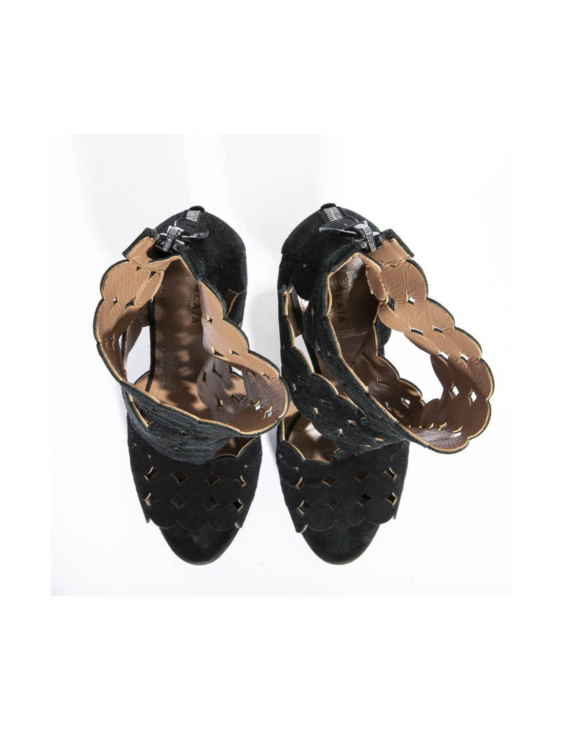 Sandales à talons Azzedine ALAIA en daim noir ajouré, taille 37