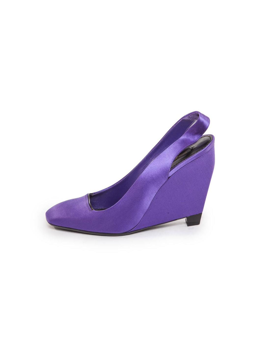 Escarpins en satin duchesse violet de la Maison Louis Vuitton, Collection Marc jacobs. Semelle en cuir. Taille 40. Etat neuf.