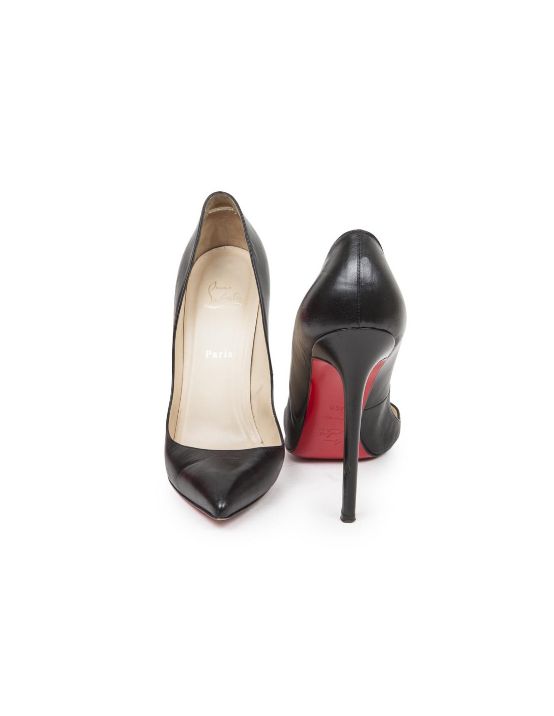 Escarpins Christian Louboutin en cuir d'agneau lisse noir, semelle rouge et bout pointu. Taille 40.5