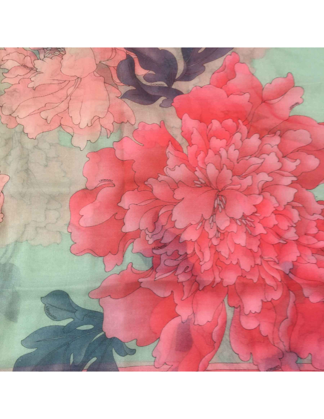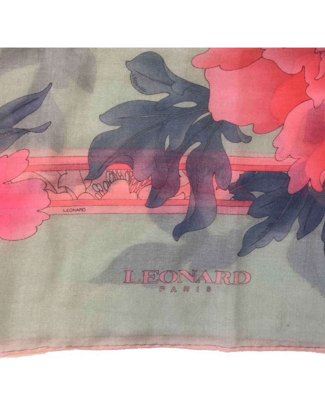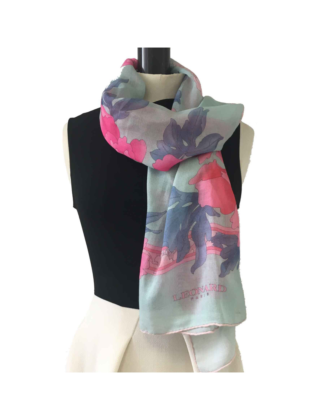 Étole LEONARD en cachemire et soie rose et bleu céladon
