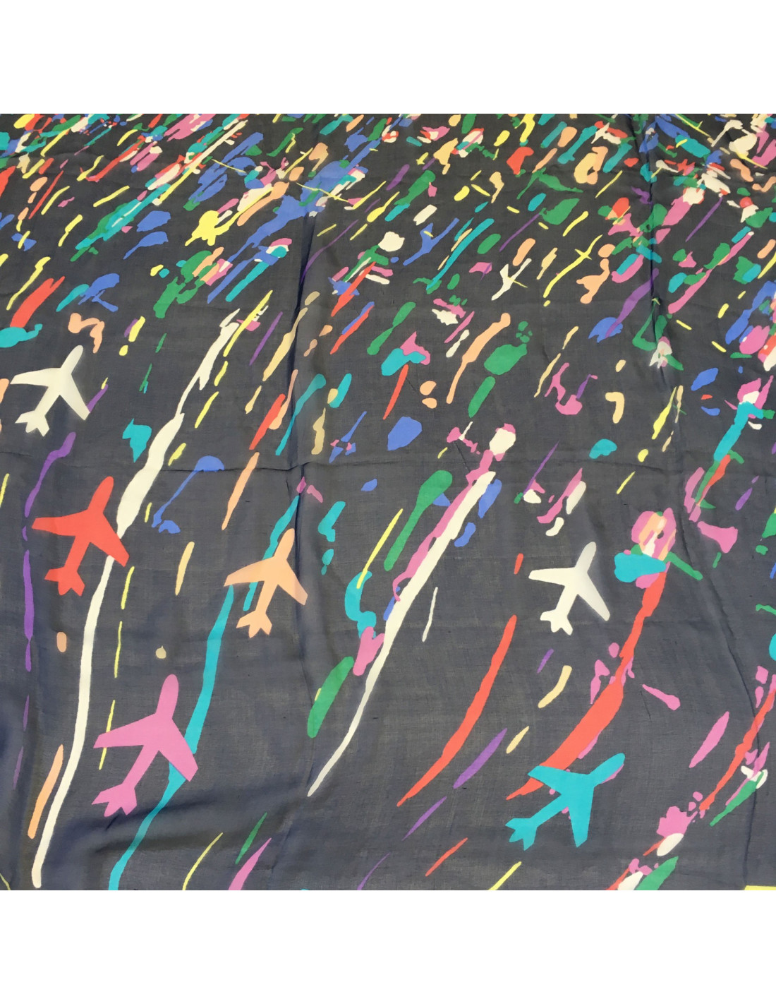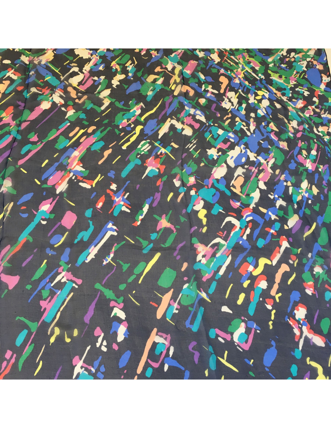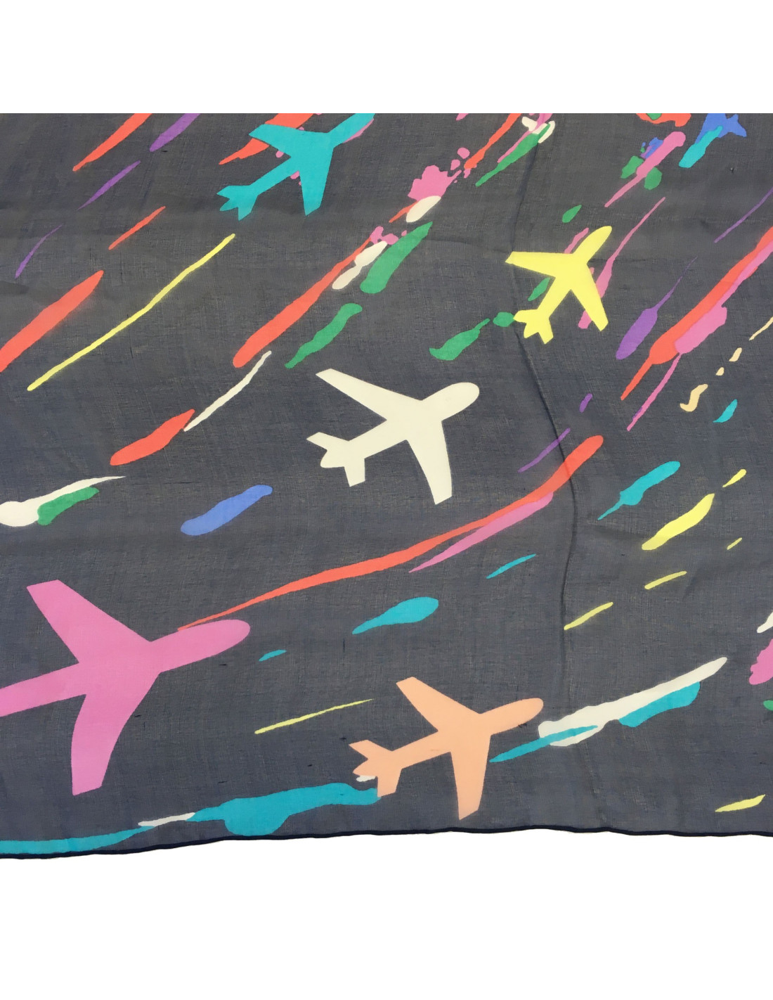 Châle CHANEL en soie bleu marine et fond multicolore