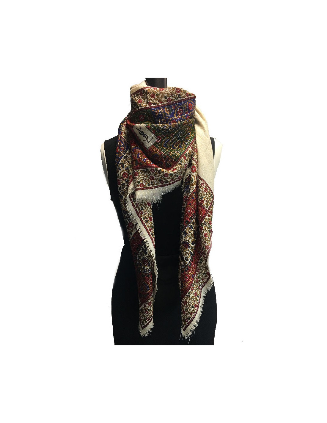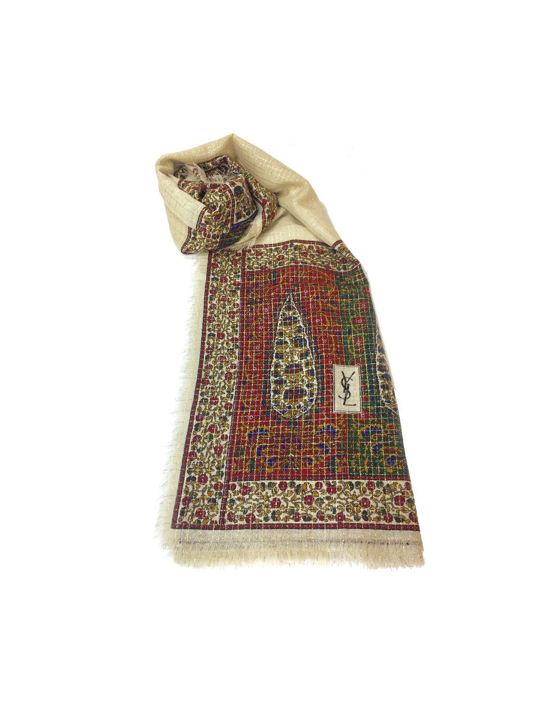 Châle Yves Saint Laurent vintage multicolore avec fils argentés et dorés
