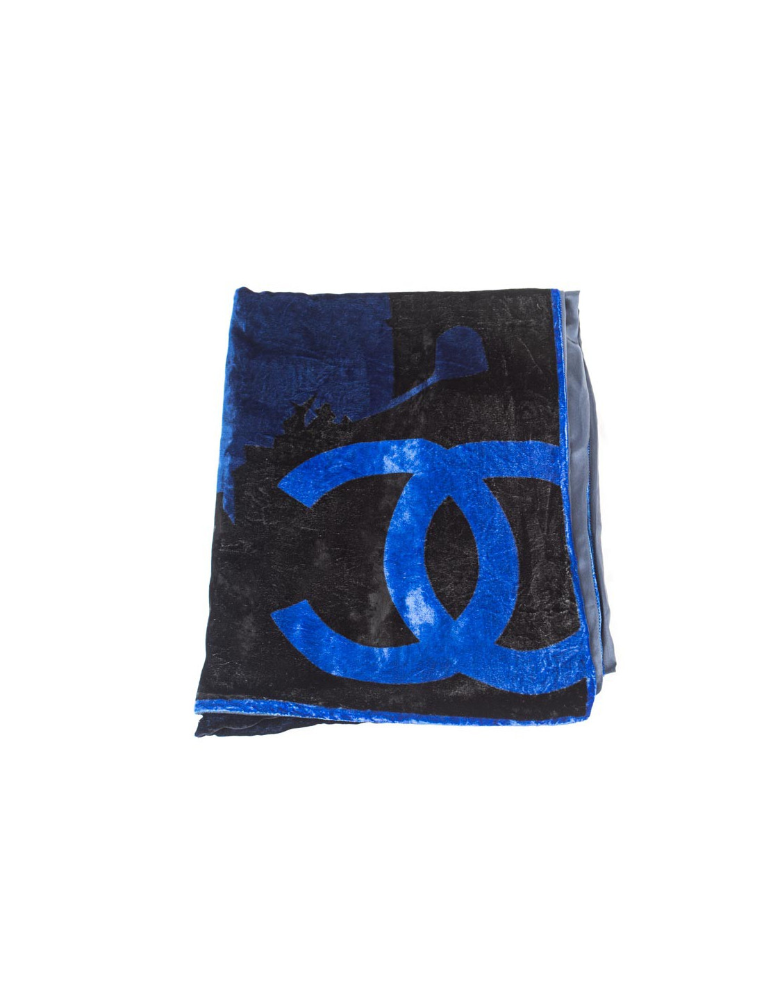 Détails : ce foulard illustre un décor parisien, logos CC contrastants sur les coins du foulard