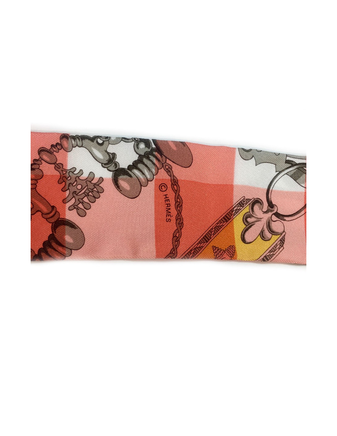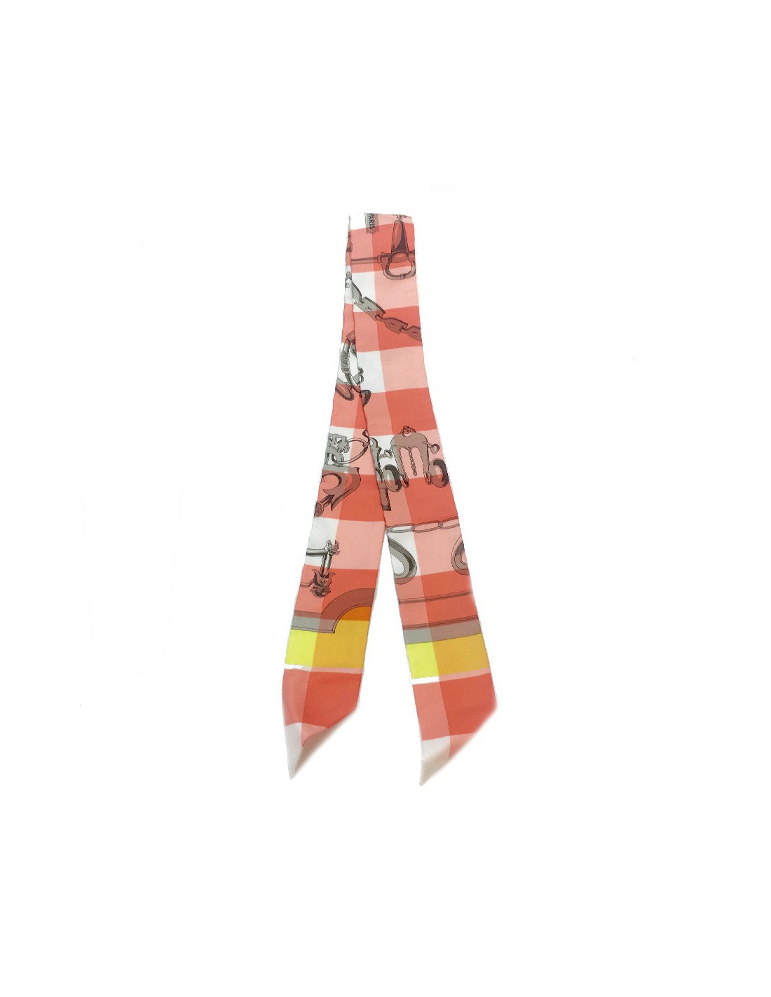 Twilly HERMES "Mors et Gourmettes " en soie vichy rose