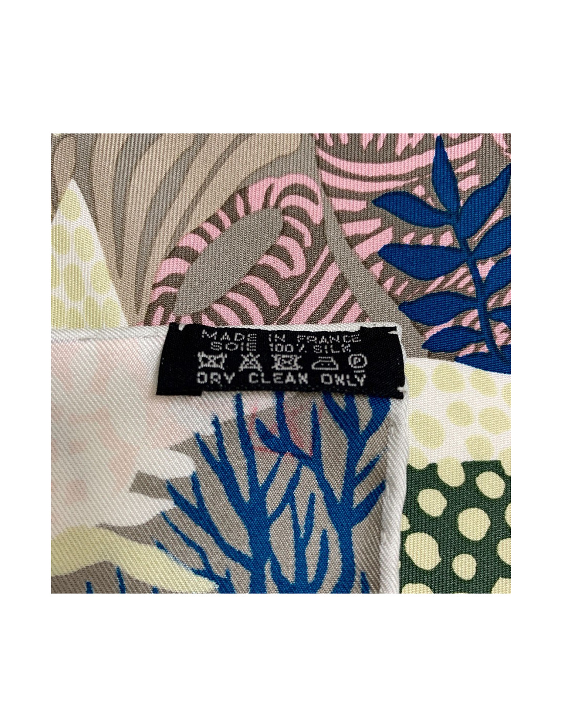 Ce carré est comme neuf. L'étiquette de matière est présente. Il provient des ventes privées (Lettre X tamponnée en dessous de l'étiquette. Le roulotté est impeccable.