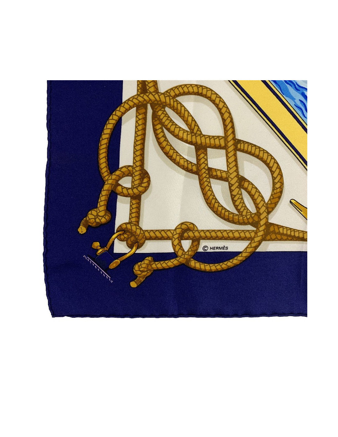 Foulard soie HERMES 'Retour de Pêche' bleu