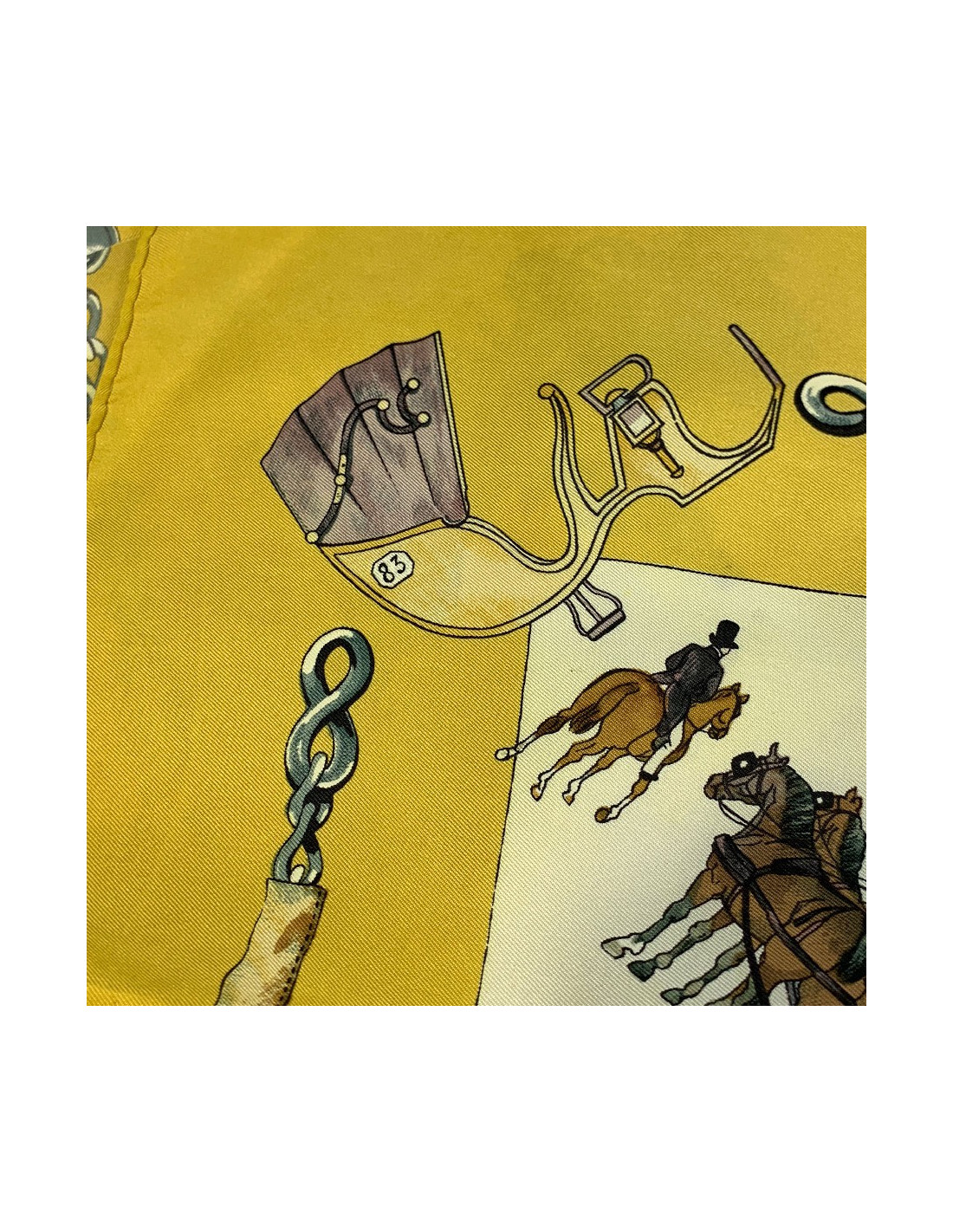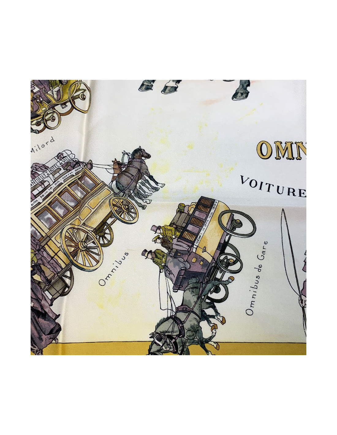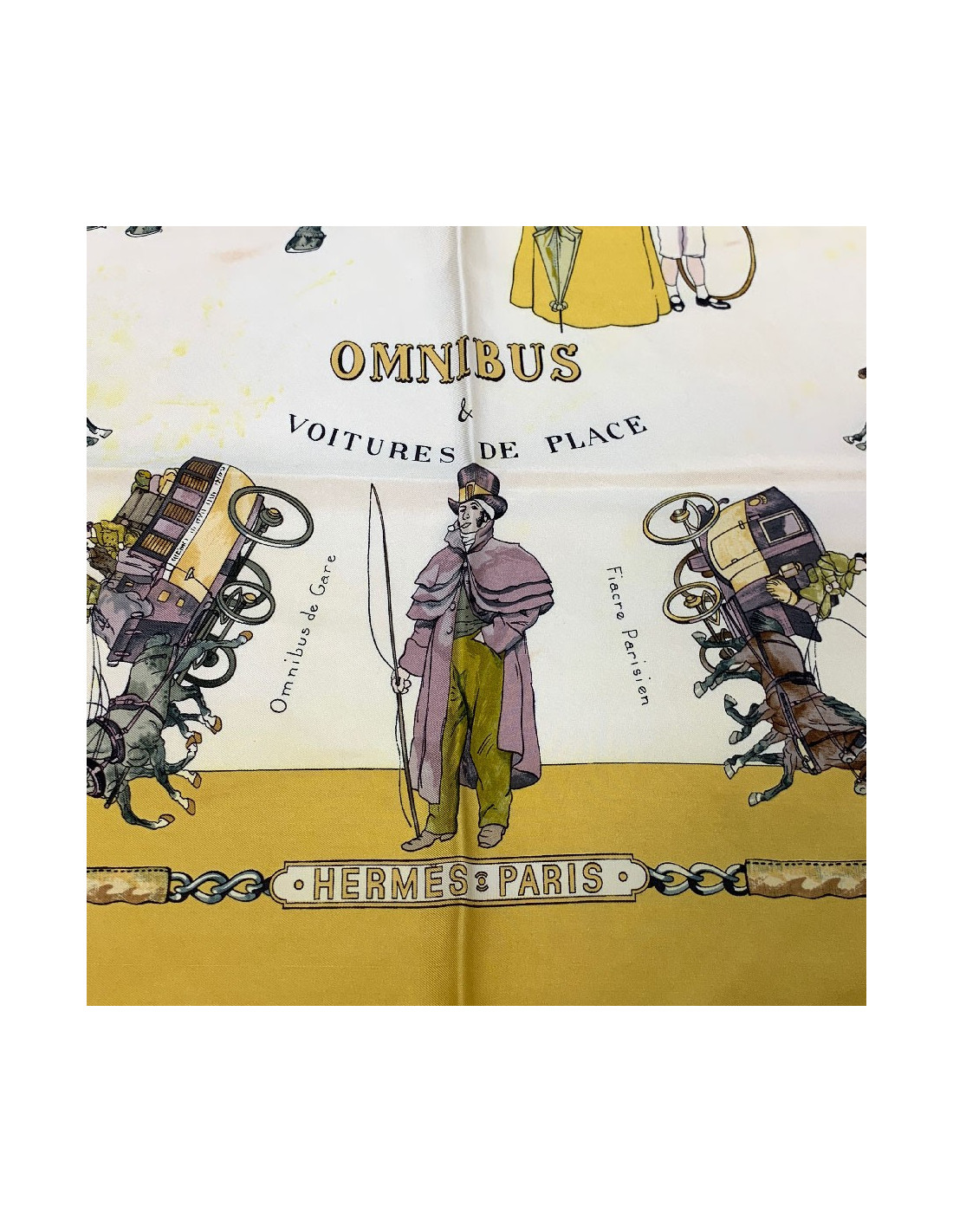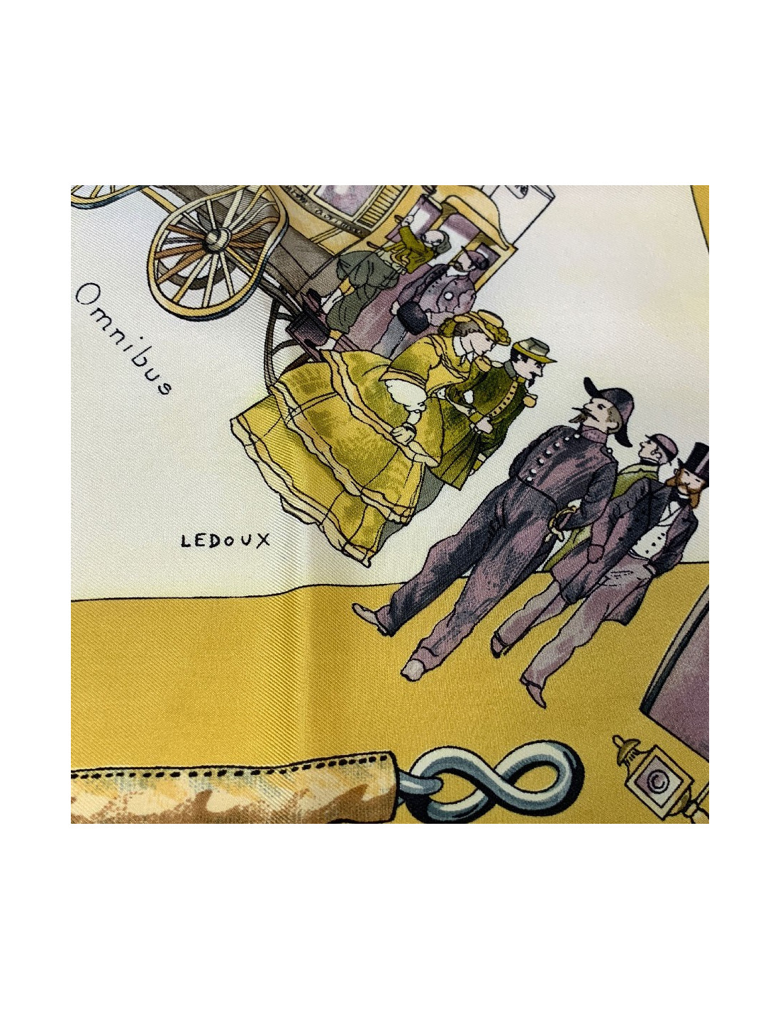 Carré HERMES Omnibus et Voitures de Place en soie or et jaune pâle