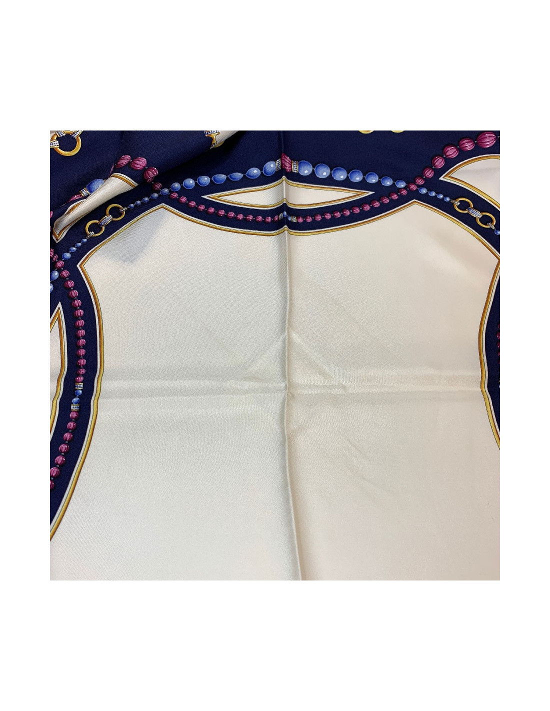 Carré CARTIER Must de Cartier en soie bleu marine, ivoire et fuchsia.