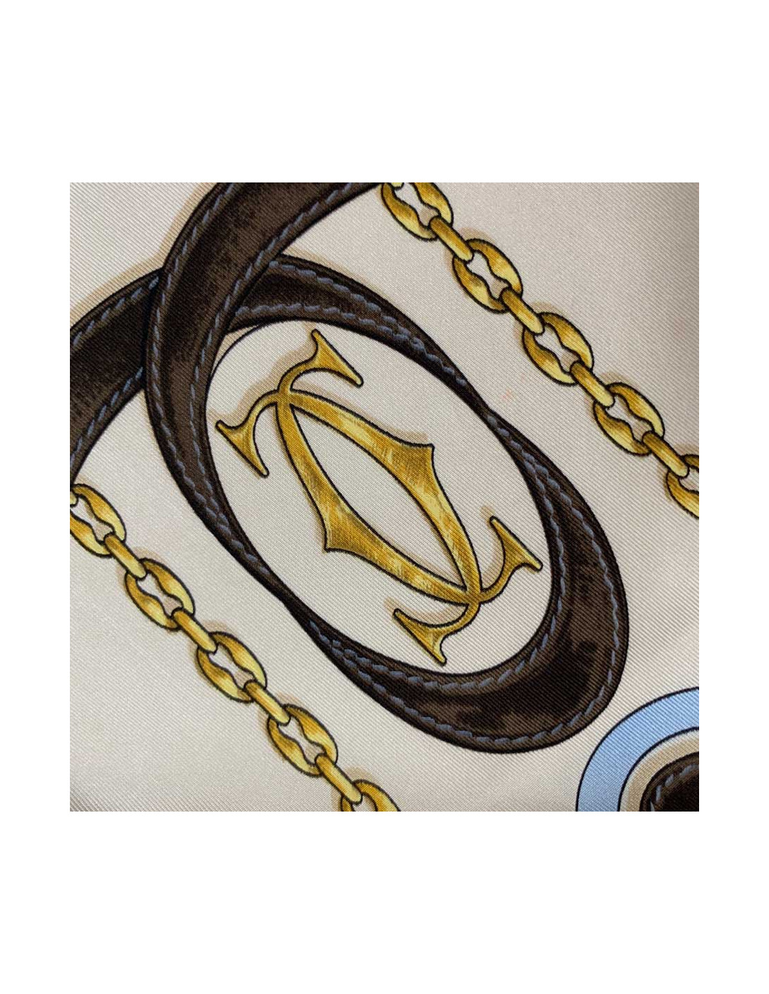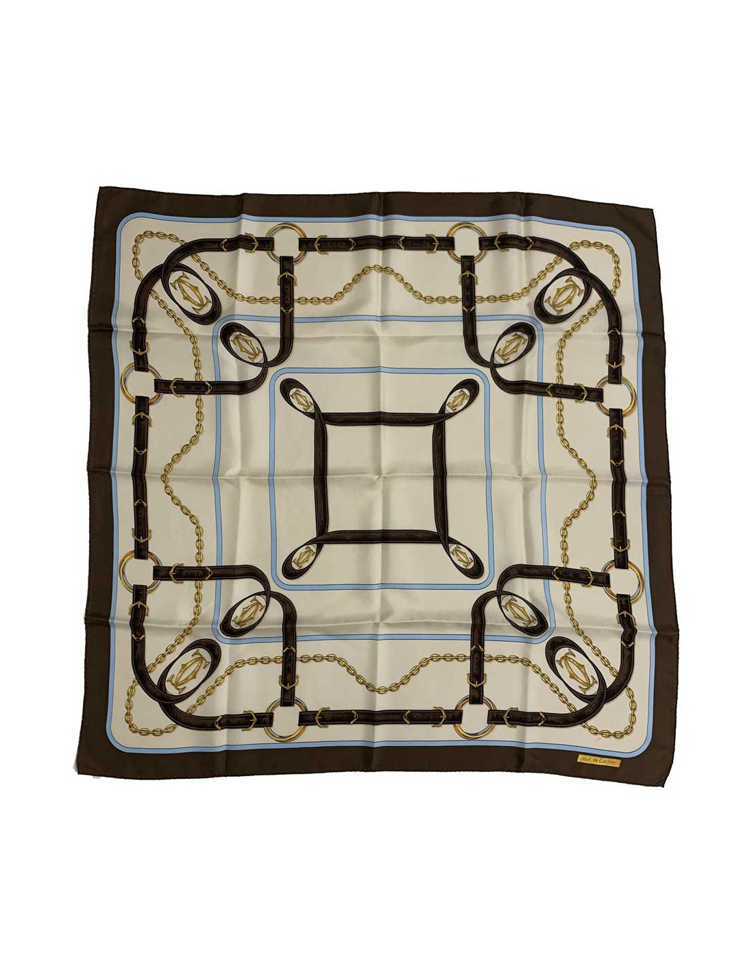 Foulard Must de CARTIER en soie marron, bleu et beige