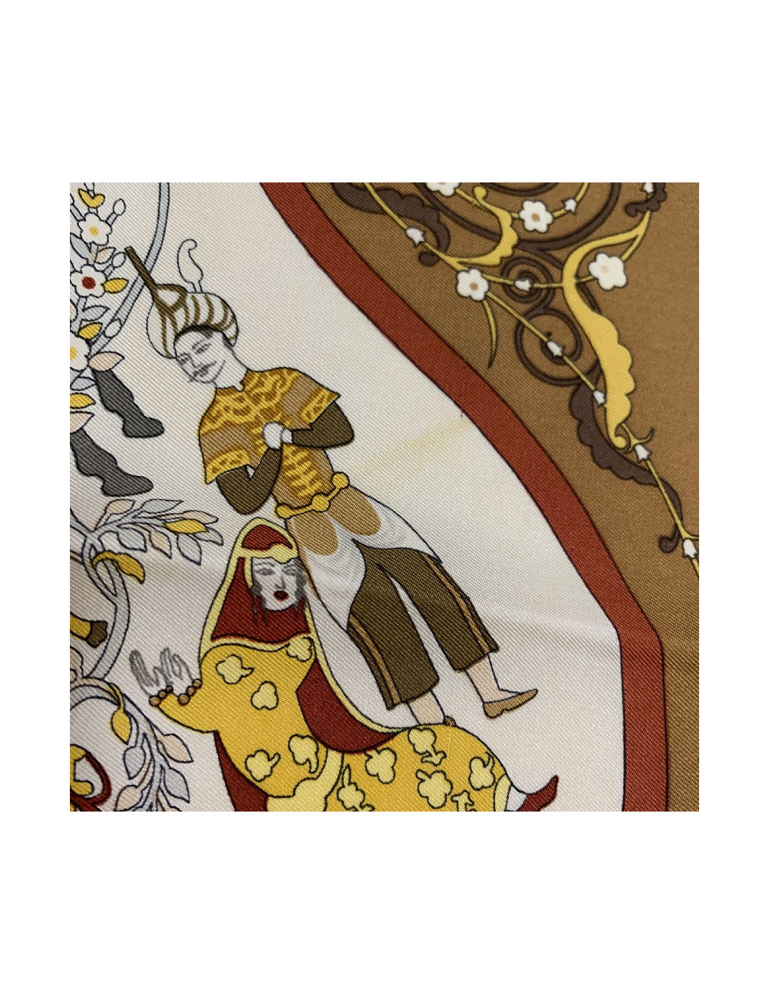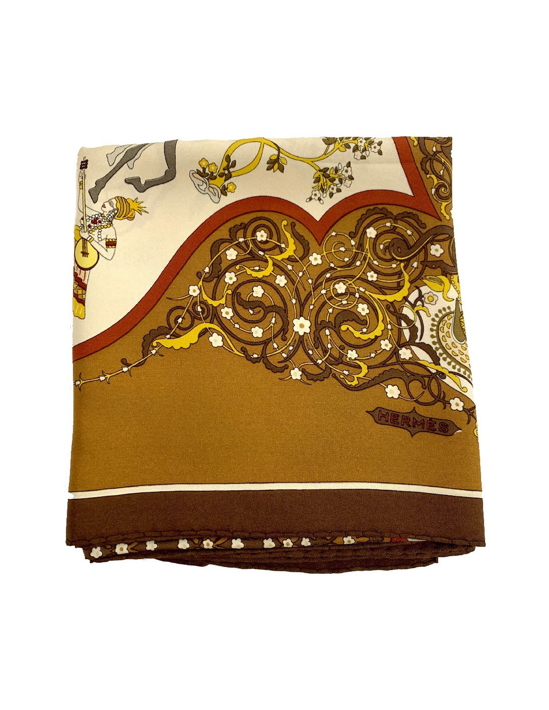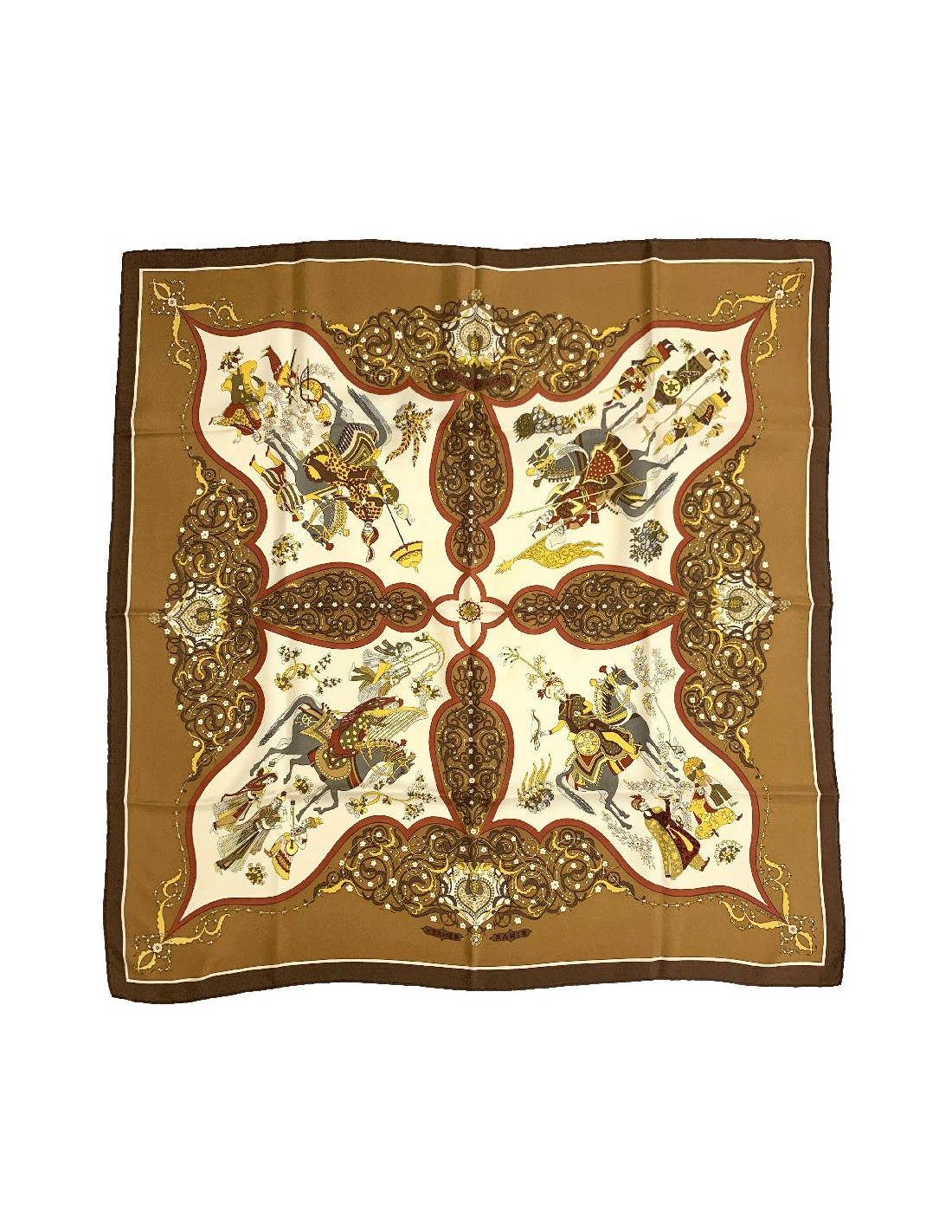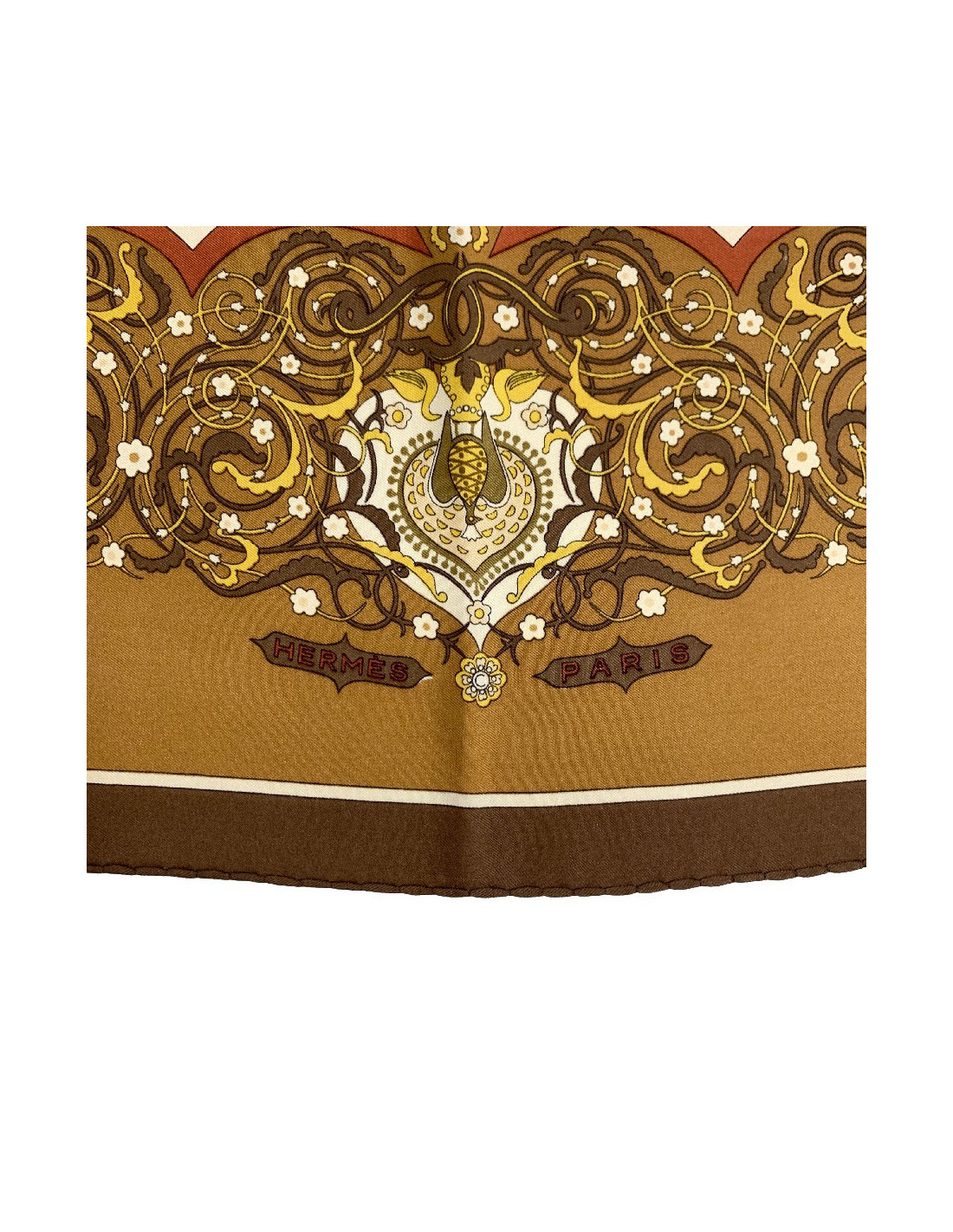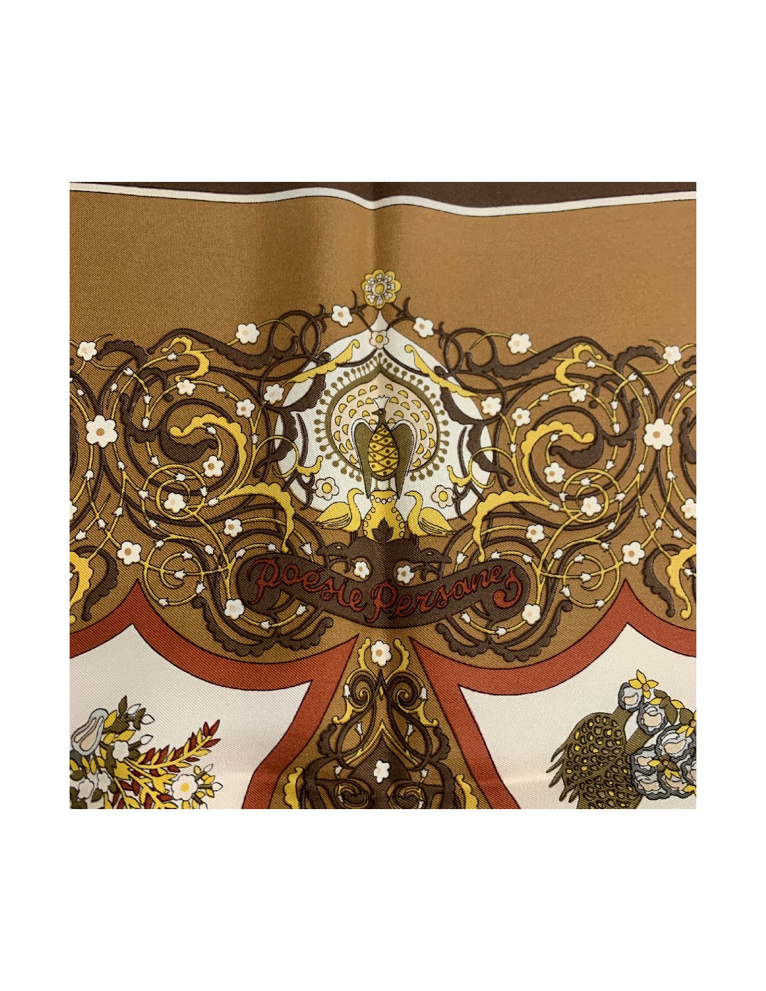 Carré HERMES " Poésie persane" en soie marron