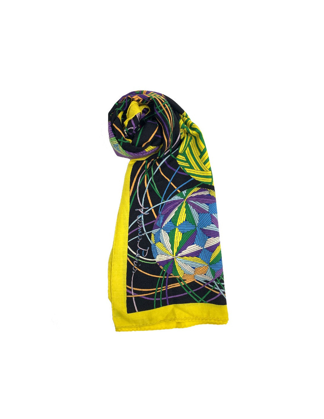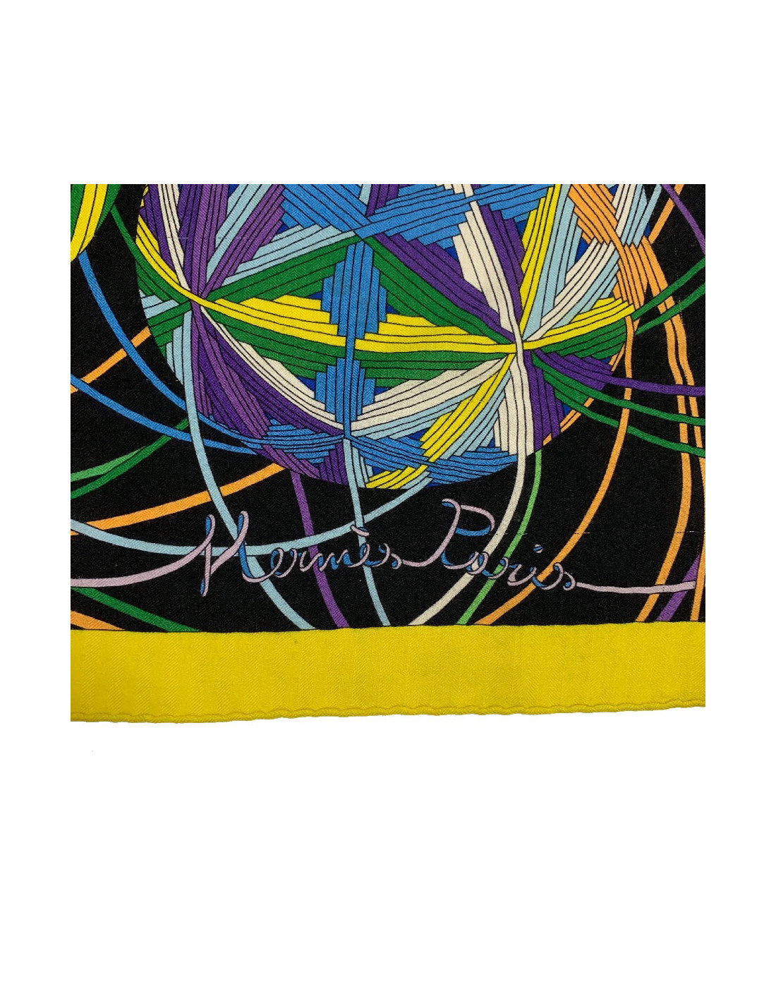Châle HERMES 140 'L'Art du Temari' en cachemire et soie jaune