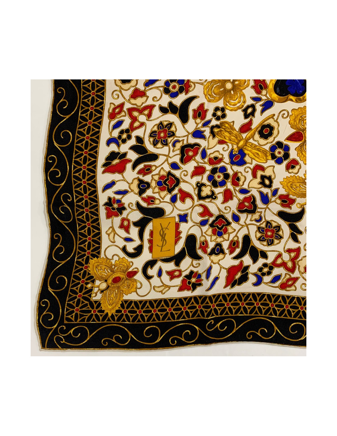 Carré de soie YVES SAINT LAURENT noir, or et beige
