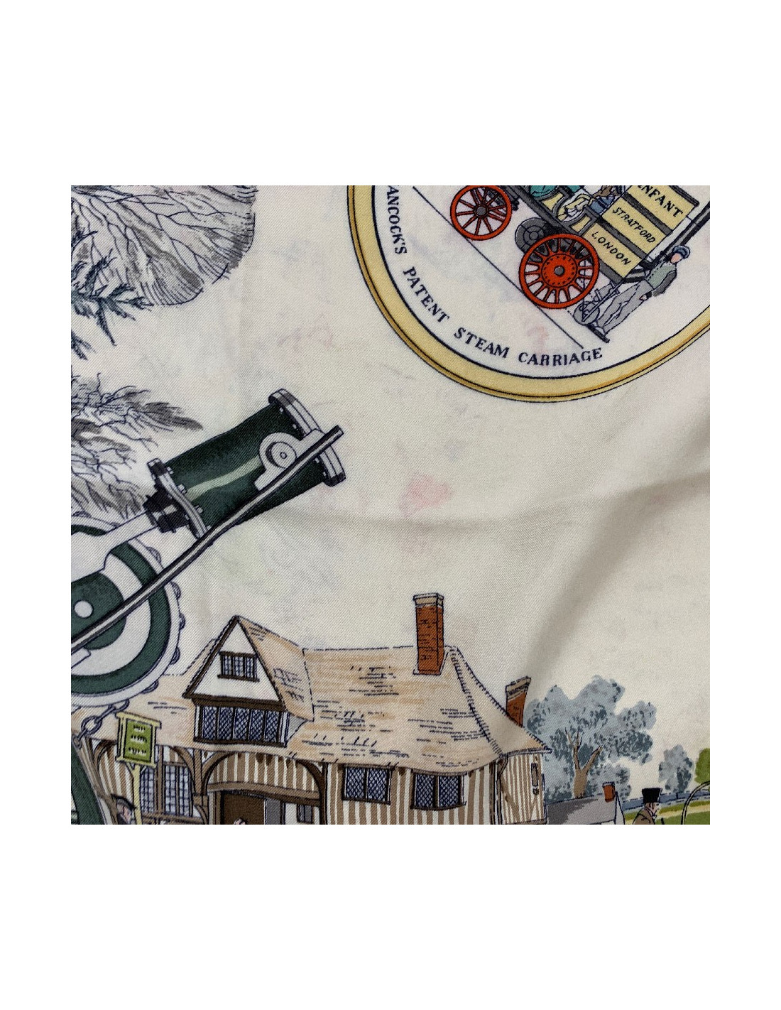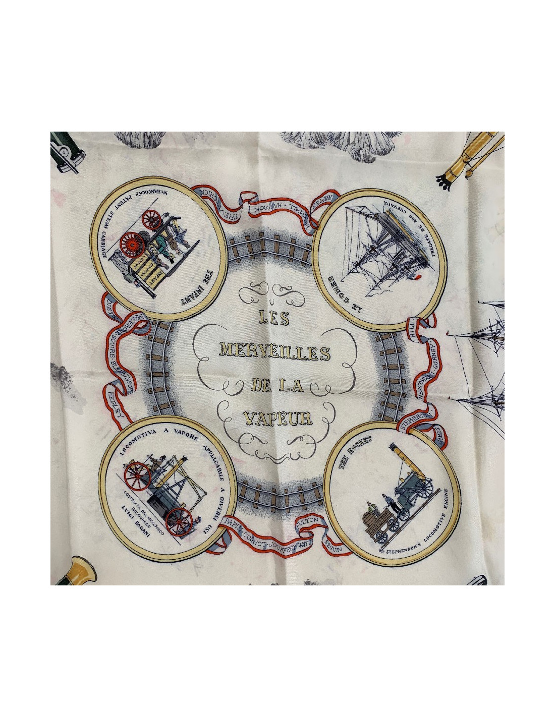 Quelques détails sur ce foulard HERMES Les Merveilles de la Vapeur en soie