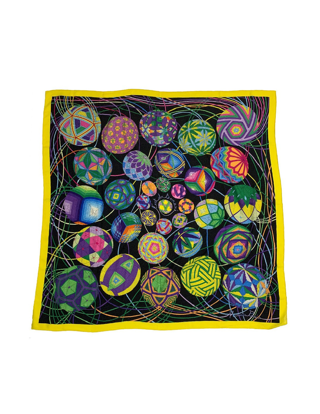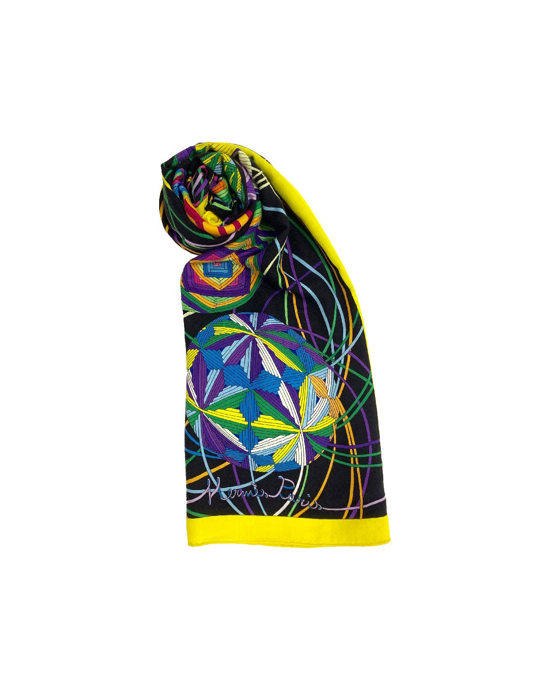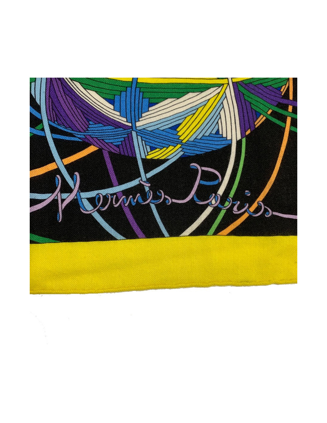 Châle HERMES 'L'Art du Temari' en cachemire et soie jaune