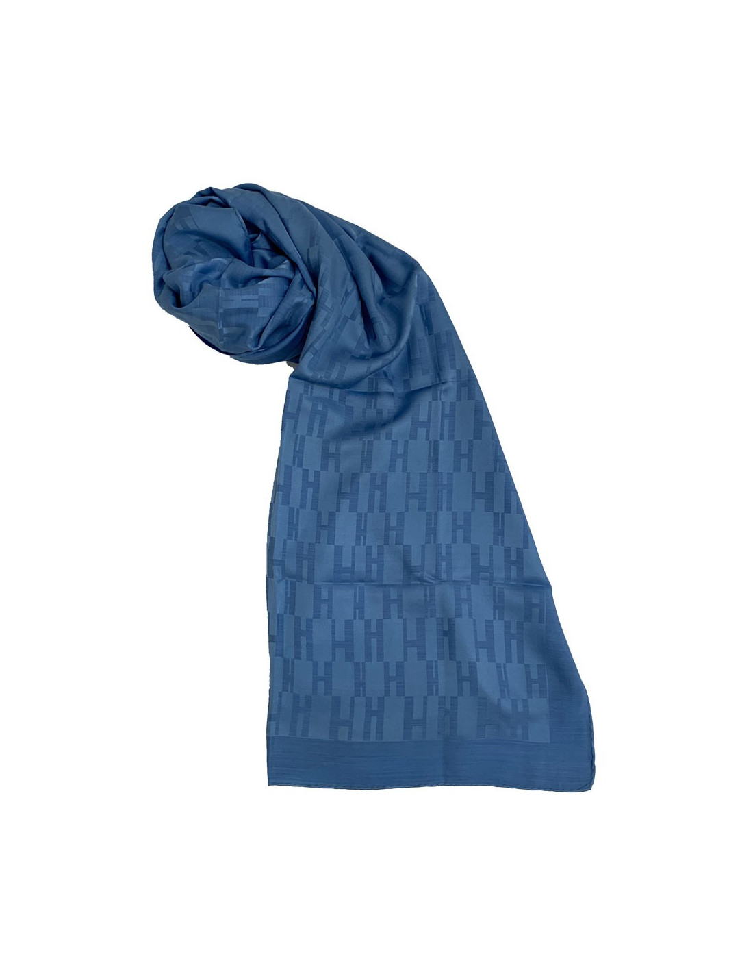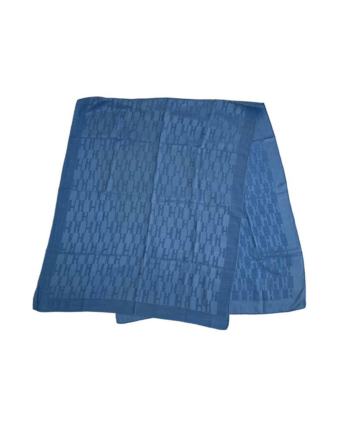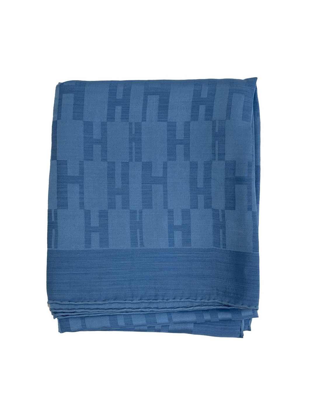 Très belle étole HERMES, modèle Façonnée Grand H, en soie et laine bleue. Très agréable à porter et douce au toucher. C'est une étole Made in France.