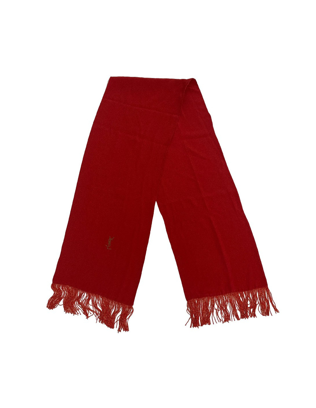 Echarpe YVES SAINT LAURENT rouge vintage à franges