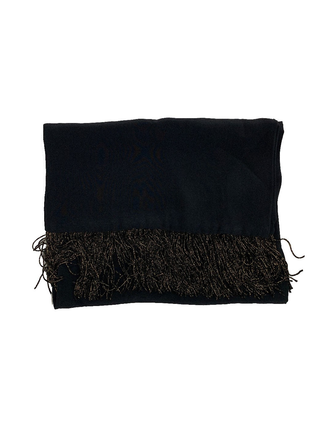 Echarpe YVES SAINT LAURENT noire vintage en soie et franges noires et dorées