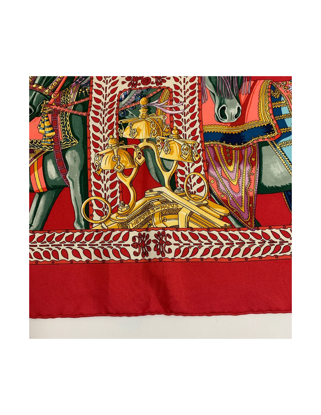 Carré HERMES "La danse du cheval Marwari" en soie multicolore :