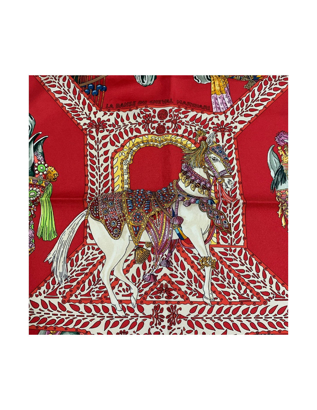Carré HERMES "La danse du cheval Marwari" soie multicolore.
