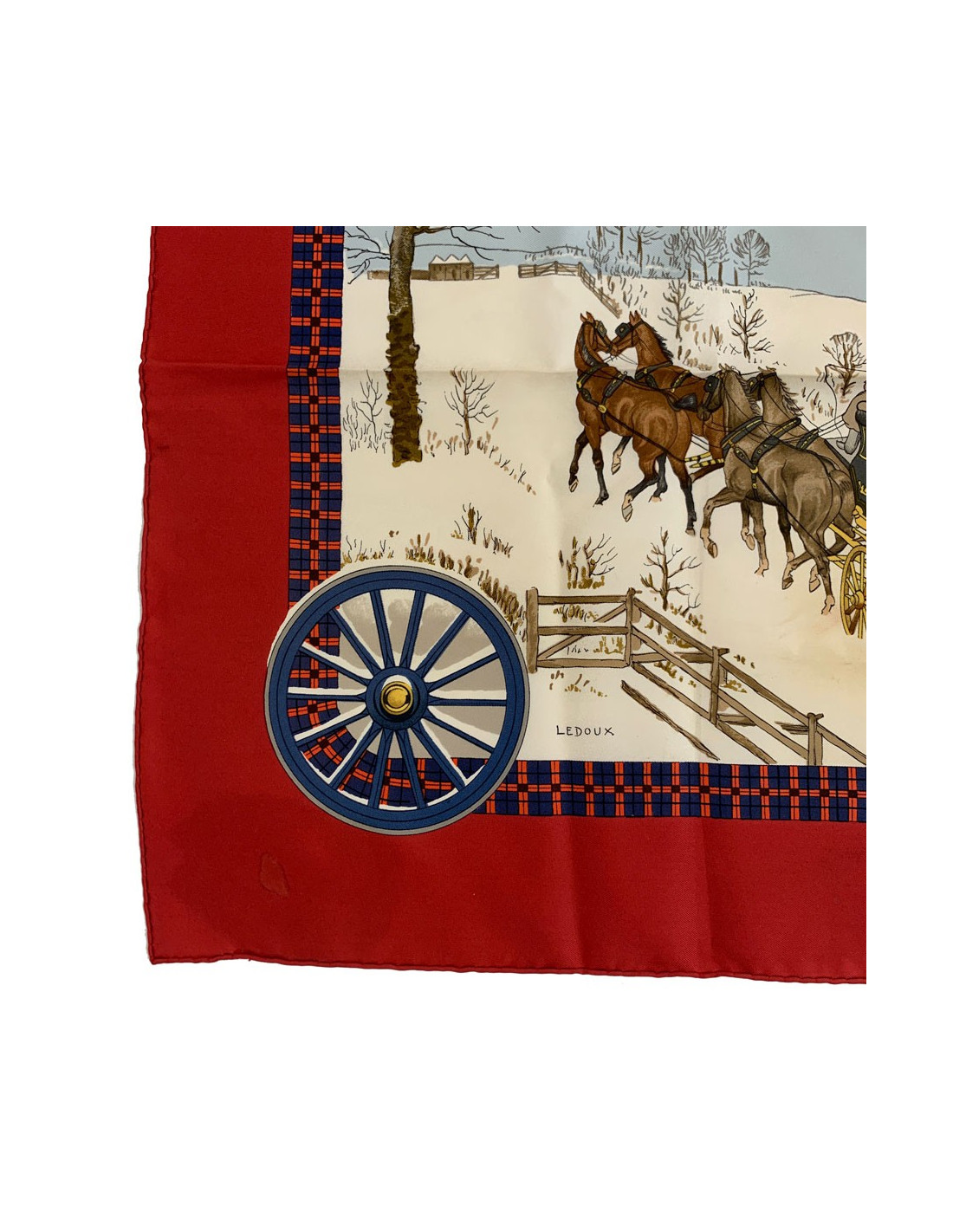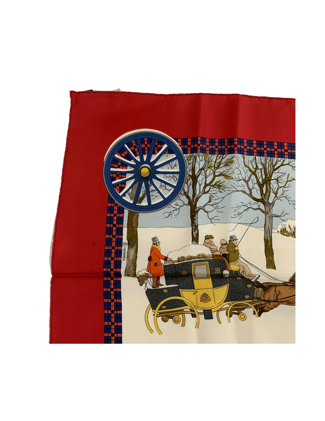 Carré rouge HERMES 'L'Hiver en Poste' en soie