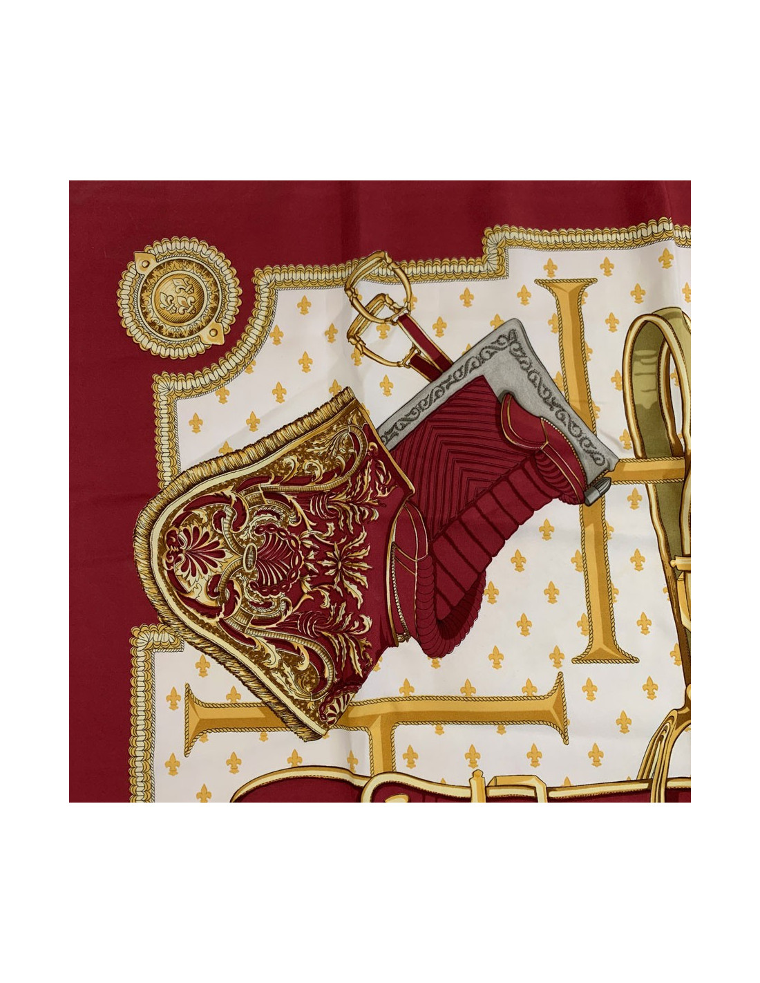 Carré HERMES 'Selles à Housse' en soie rouge vintage