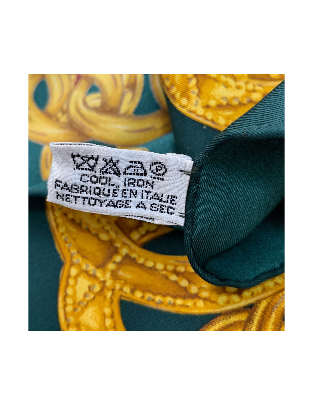 Carré CHANEL imprimé chaines dorées en soie vert foncé